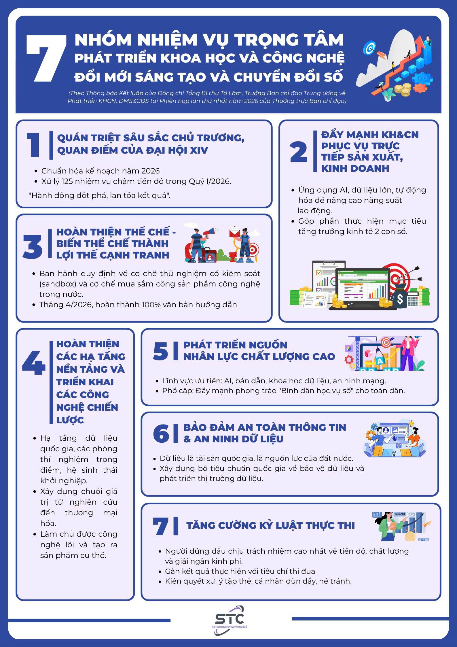 7 NHÓM NHIỆM VỤ TRỌNG TÂM PHÁT TRIỂN KHOA HỌC VÀ CÔNG NGHỆ ĐỔI MỚI SÁNG TẠO VÀ CHUYỂN ĐỔI SỐ