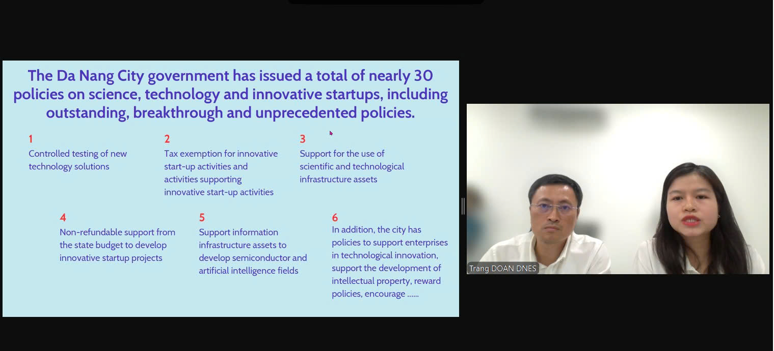 Thời gian qua, Đà Nẵng đã ban hành gần 30 chính sách hỗ trợ khoa học công nghệ và khởi nghiệp đổi mới sáng tạo, trong đó có các chính sách đặc thù vượt trội, mang tính đột phá và chưa từng có tiền lệ như là chính sách về thử nghiệm có kiểm soát các giải pháp công nghệ mới; miễn thuế cho các hoạt động khởi nghiệp đổi mới sáng tạo, hoạt động hỗ trợ khởi nghiệp đổi mới sáng tạo; hỗ trợ sử dụng tài sản kết cấu hạ tầng khoa học và công nghệ; hỗ trợ không hoàn lại từ ngân sách nhà nước để phát triển dự án khởi nghiệp sáng tạo; hỗ trợ tài sản kết cấu hạ tầng thông tin để phát triển lĩnh vực vi mạch bán dẫn và trí tuệ nhân tạo. Bên cạnh đó, thành phố có các chính sách về hỗ trợ doanh nghiệp đổi mới công nghệ, hỗ trợ phát triển tài sản trí tuệ, chính sách khen thưởng, động viên, khuyến khích tôn vinh các nhà khoa học, tổ chức cá nhân có thành tích xuất sắc trong hoạt động khoa học, công nghệ, khởi nghiệp sáng tạo… cho thấy sự nỗ lực, hỗ trợ đồng hành của chính quyền thành phố để phát triển hệ sinh thái khởi nghiệp sáng tạo