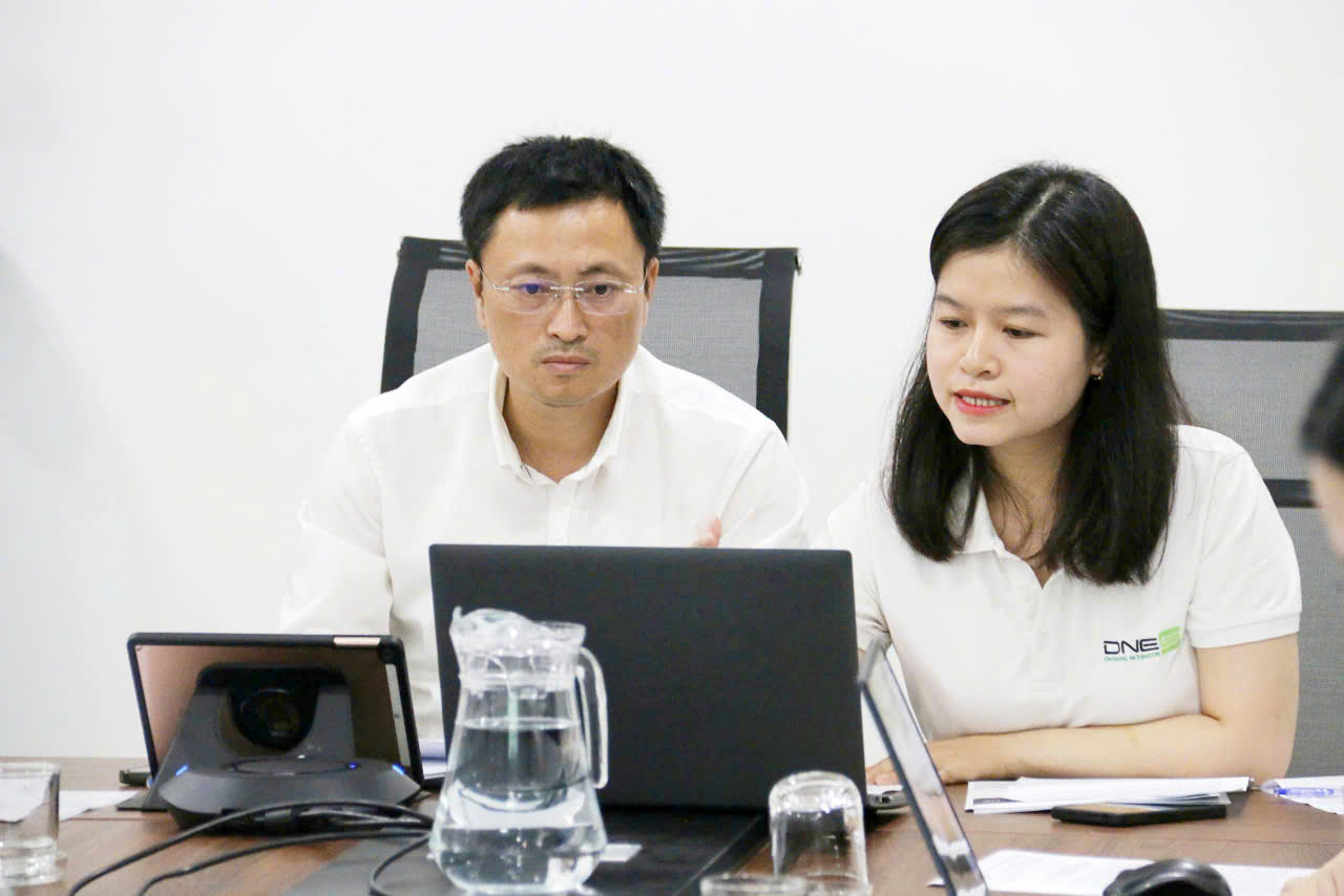 Ông Nguyễn Viết Toàn - Giám đốc Trung tâm Hỗ trợ khởi nghiệp đổi mới sáng tạo (DISSC) thuộc Sở Khoa học và Công nghệ thành phố Đà Nẵng và Bà Đoàn Thị Xuân Trang - Phó Giám đốc Vườn ươm Doanh nghiệp Đà Nẵng (DNES) trình bày tại sự kiện