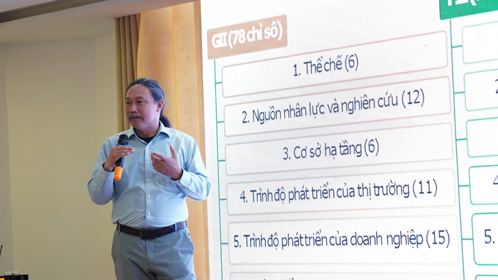 Ông Nguyễn Võ Hưng - Phó Giám đốc Trung tâm Hỗ trợ Đổi mới sáng tạo, Cục Đổi mới sáng tạo, Bộ Khoa học và Công nghệ chia sẻ, trao đổi tại Hội thảo