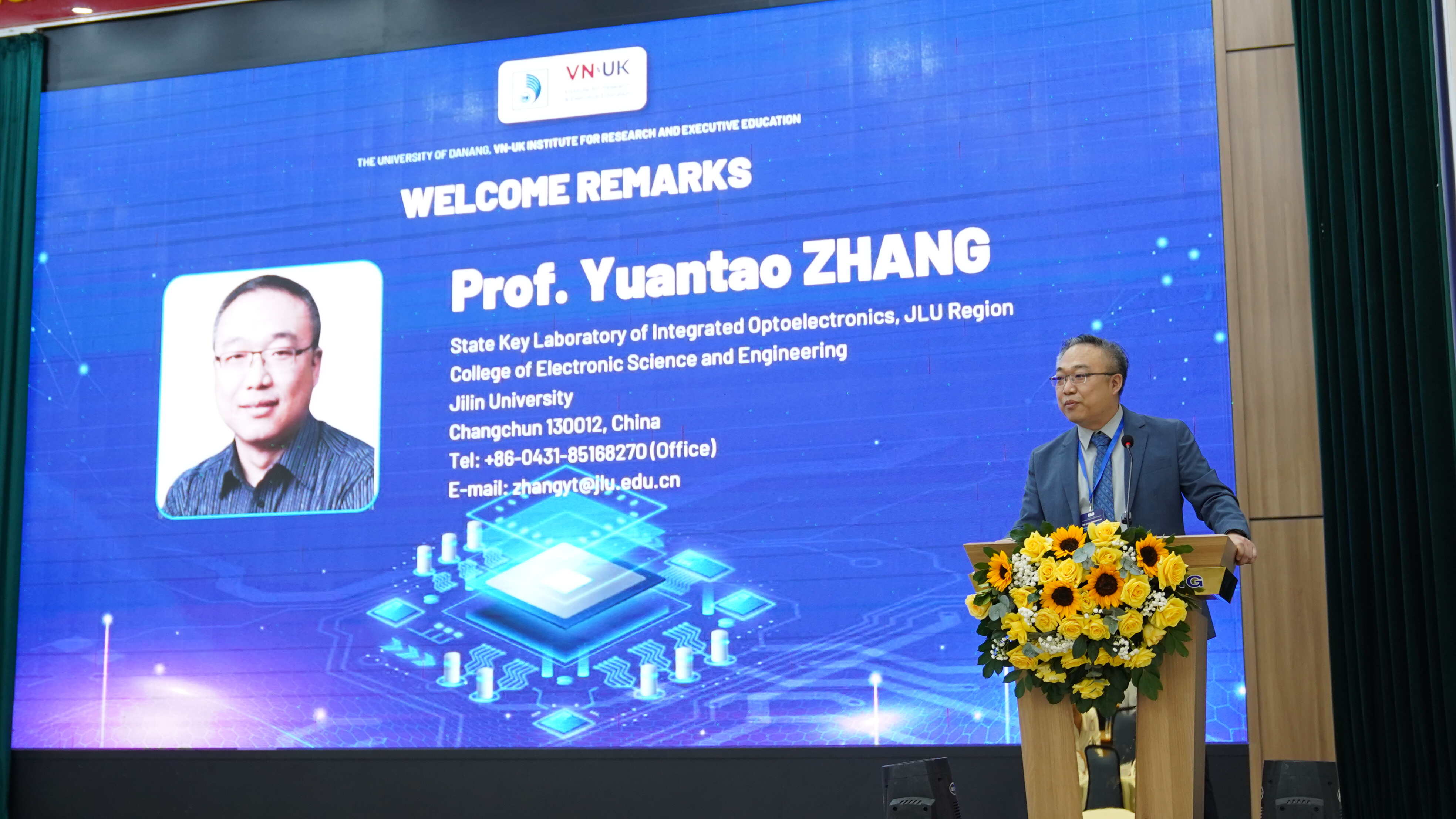 Ngày 23/04, Viện Nghiên cứu và Đào tạo Việt - Anh (VNUK), Đại học Đà Nẵng đã tổ chức khai mạc Hội thảo Khoa học quốc tế với chủ đề “Thiết bị và vật liệu quang điện tử bán dẫn có vùng cấm rộng” (The Asian Workshop on Wide Bandgap Semiconductor Materials and Devices - AWWBSMD). Tham sự Hội thảo có ông Dương Hoàng Văn Bản - Phó Giám đốc Sở Khoa học và Công nghệ thành phố Đà Nẵng và hơn 100 đại biểu là các nhà khoa học, chuyên gia, cán bộ giảng viên và sinh viên đến từ Việt Nam, Hàn Quốc và Trung Quốc.
