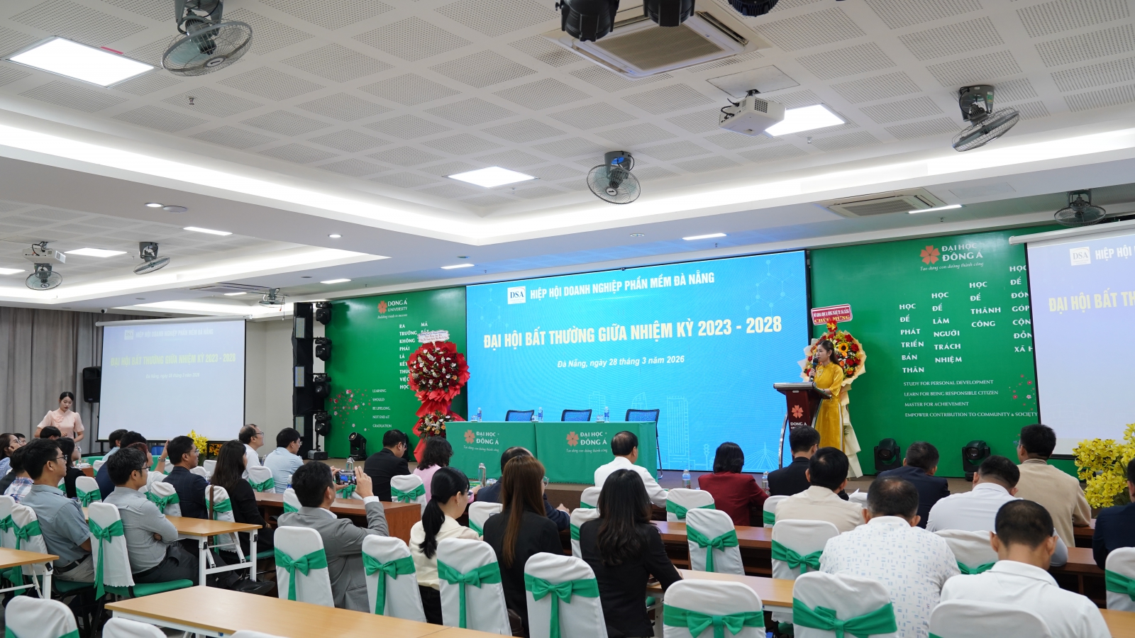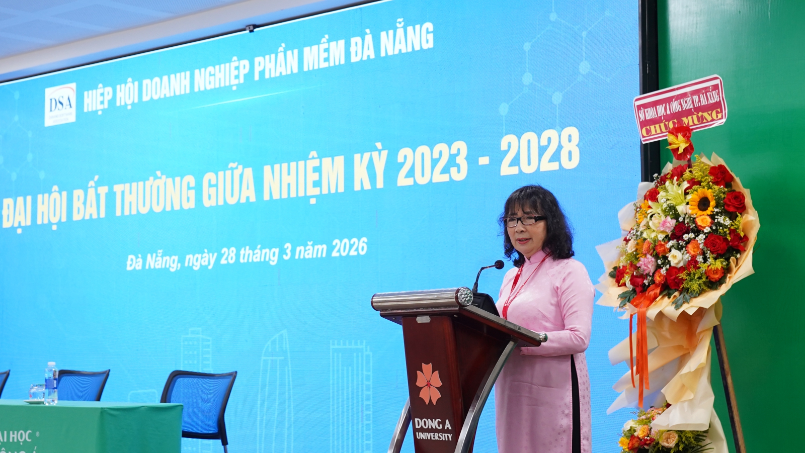 Sáng ngày 28/3, Hiệp hội Doanh nghiệp phần mềm Đà Nẵng (DSA) đã tổ chức Đại hội bất thường giữa nhiệm kỳ 2023-2028 tại Trường Đại học Đông Á, đồng thời công bố đổi tên thành Hiệp hội Công nghệ số Đà Nẵng (DTA). Sự kiện đánh dấu bước ngoặt quan trọng trong định hướng phát triển, với mục tiêu mở rộng phạm vi hoạt động, thích ứng xu thế công nghệ mới và tăng cường liên kết trong hệ sinh thái số. Tham dự có bà Lê Thị Thục - Phó Giám đốc Sở Khoa học và Công nghệ thành phố Đà Nẵng.