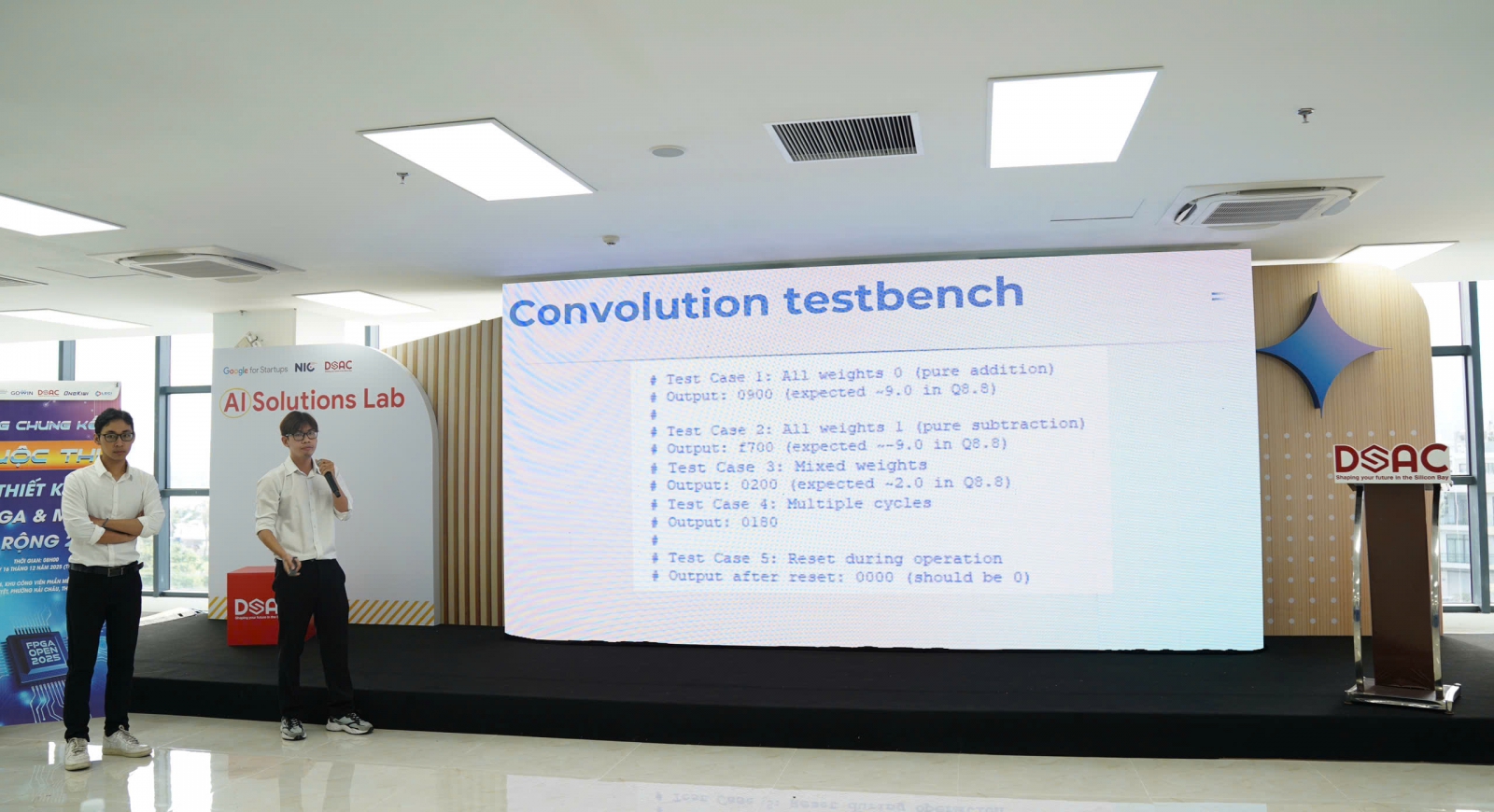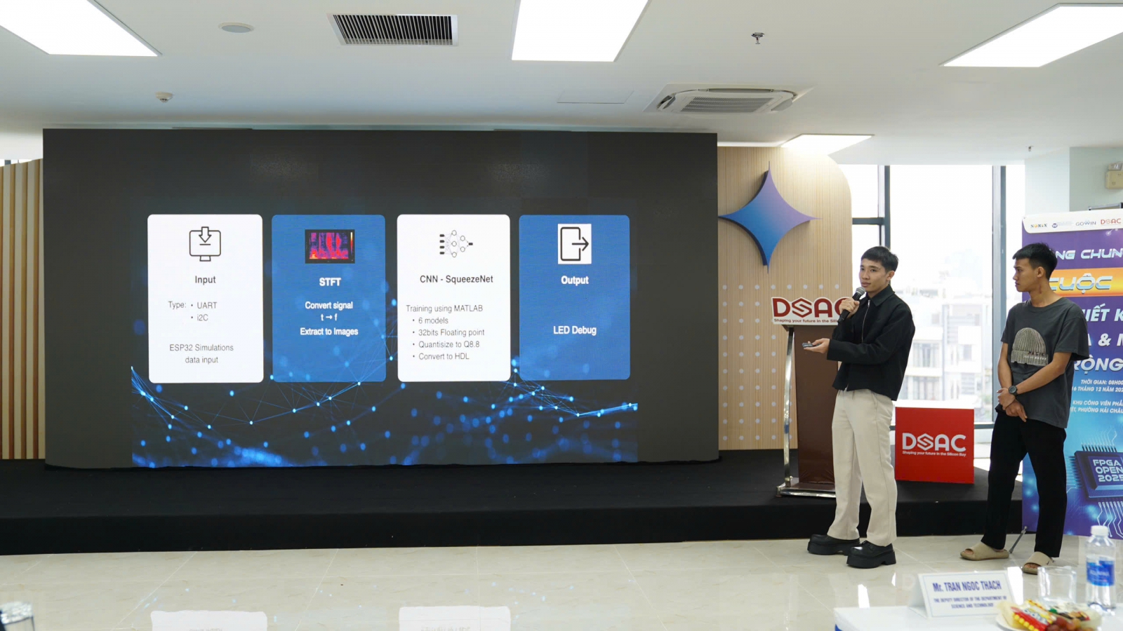 Nhằm hỗ trợ các đội thi nâng cao kỹ năng thực hành, tăng cường khả năng ứng dụng thiết kế vi mạch vào thực tế và hoàn thiện sản phẩm, Trung tâm DSAC đã phối hợp với các doanh nghiệp gồm Gowin Semiconductor, OneKiwi Technology, Willas Electronic Việt Nam và Sonix tổ chức chương trình đào tạo, bồi dưỡng ngắn hạn về thiết kế vi mạch FPGA và vi điều khiển MCU. Chương trình thu hút 83 học viên là giảng viên và sinh viên đến từ nhiều cơ sở đào tạo trên địa bàn thành phố tham gia.