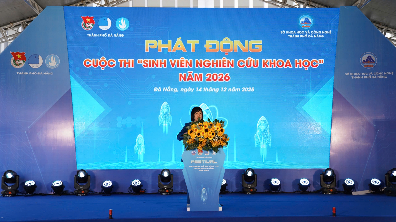 Bà Lê Thị Thục – Phó Giám đốc Sở Khoa học và Công nghệ thành phố Đà Nẵng phát động Cuộc thi Sinh viên nghiên cứu khoa thành phố Đà Nẵng năm 2026