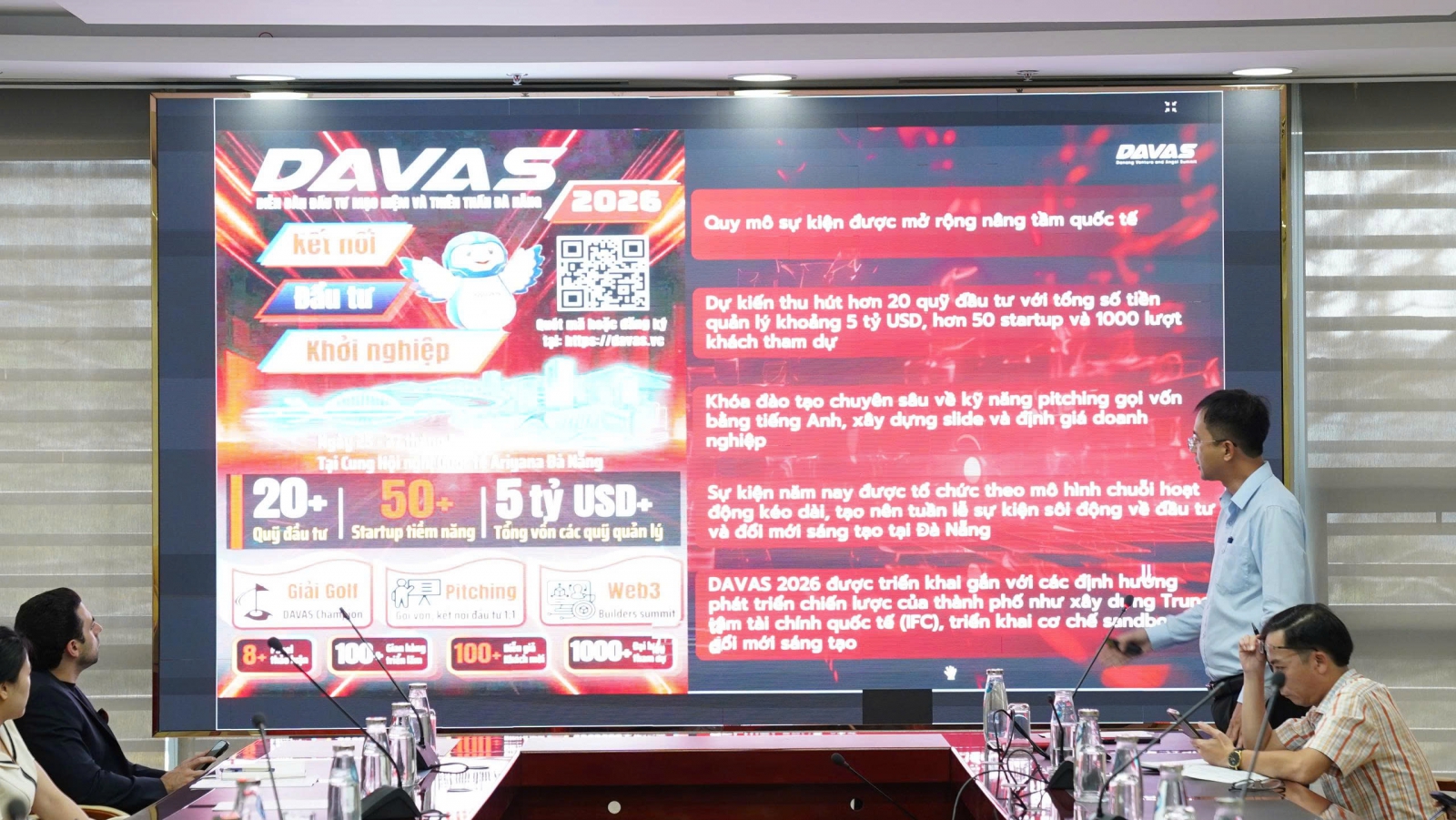 Tại cuộc họp, ông Võ Đức Anh - Phó Giám đốc Trung tâm Hỗ trợ khởi nghiệp đổi mới sáng tạo Đà Nẵng đã trình bày dự thảo kế hoạch tổ chức DAVAS 2026 với nhiều nội dung được thiết kế theo hướng chuyên sâu, thực chất và phù hợp với xu hướng đầu tư hiện nay. Theo đó, DAVAS 2026 dự kiến sẽ diễn ra trong 3 ngày (25/5 - 27/5/2026) với chuỗi hoạt động nổi bật như: Diễn đàn đầu tư mạo hiểm và thiên thần Đà Nẵng năm 2026, Triển lãm công nghệ và gian hàng startup; Giải DAVAS Champion Golf và tiệc chào mừng; Hội nghị thượng đỉnh các nhà xây dựng Web3 (Web3 Builders' Summit 2026); Chương trình Đối thoại Kết nối Chiến lược,…