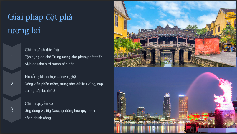 Cùng với đó, Đà Nẵng chủ động ứng dụng các công nghệ mới như trí tuệ nhân tạo (AI), blockchain vào quản trị hành chính công. Ngay khi mô hình chính quyền 2 cấp được triển khai, các công nghệ số đã được tích hợp vào quy trình giải quyết thủ tục hành chính, mang lại hiệu quả rõ rệt trong phục vụ người dân và doanh nghiệp. Đây là bước đi cụ thể nhằm thực hiện Nghị quyết 57-NQ/TW của Bộ Chính trị về đột phá phát triển khoa học, công nghệ, đổi mới sáng tạo và chuyển đổi số quốc gia.