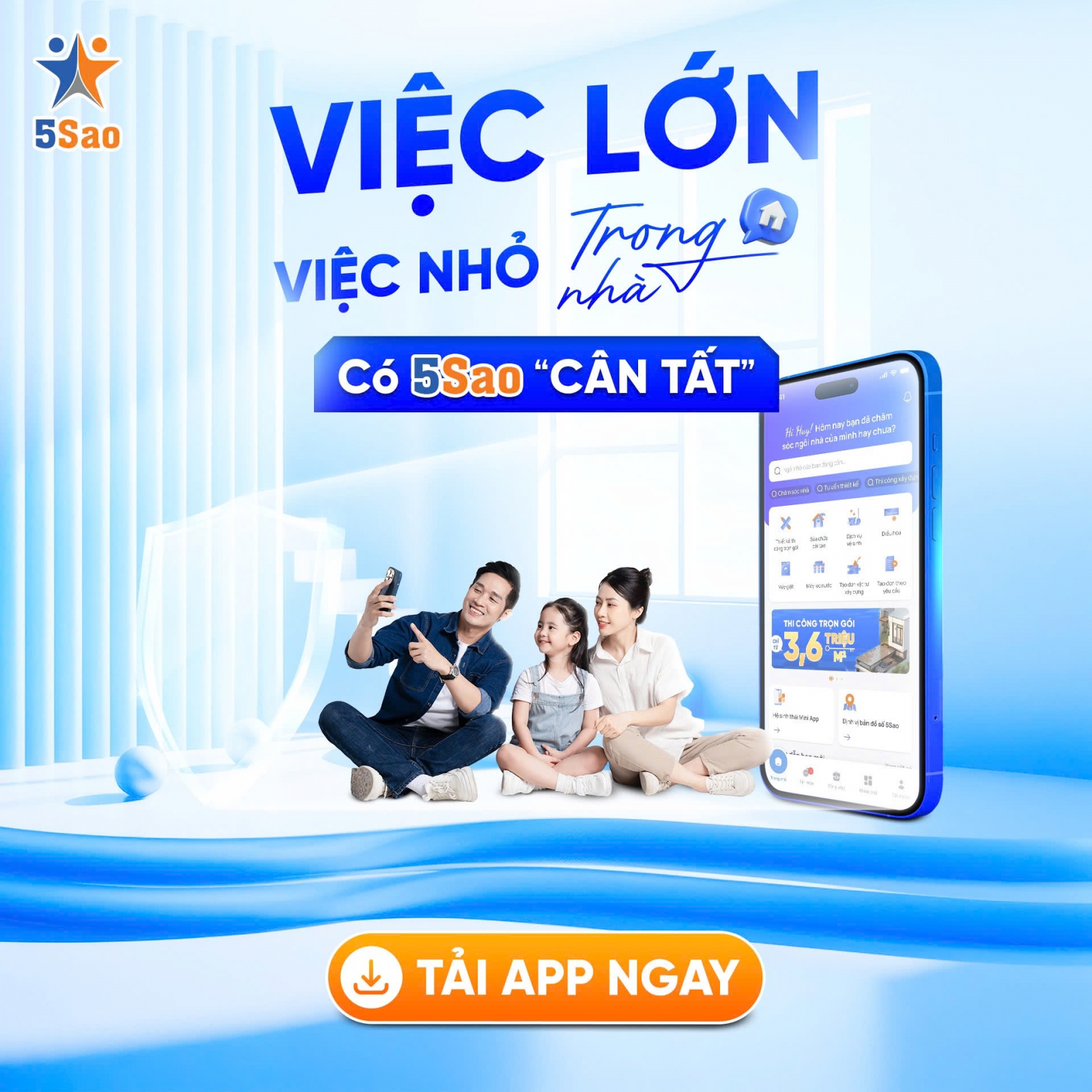 Thay vì phải lưu giữ hàng chục số điện thoại rời rạc, ứng dụng gọi thợ 5Sao mang đến giải pháp "tất cả trong một" ngay trên smartphone. Từ bảo trì điện lạnh, lắp đặt điện nước, vệ sinh chuyên sâu (sofa, nệm, rèm), đến kết nối thợ thầu cải tạo, thiết kế, thi công xây dựng, tất cả đều được tích hợp đồng bộ với quy trình chuẩn hóa.