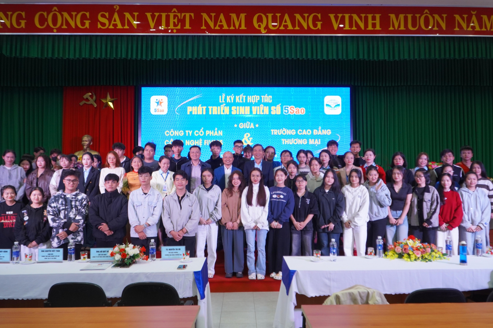 Ngày 02/02, dưới sự đồng hành, hỗ trợ kết nối của Trung tâm Hỗ trợ khởi nghiệp đổi mới sáng tạo Đà Nẵng, Công ty Cổ phần Công nghệ FiveSS phối hợp với Trường Cao đẳng Thương mại tổ chức Talkshow “Chương trình đào tạo – Sinh viên số 5 Sao”. Chương trình là hoạt động cụ thể hóa mô hình liên kết Nhà nước – Nhà trường – Nhà doanh nghiệp trong đào tạo gắn với nhu cầu thực tiễn của thị trường lao động, góp phần nâng cao chất lượng nguồn nhân lực trong bối cảnh chuyển đổi số.