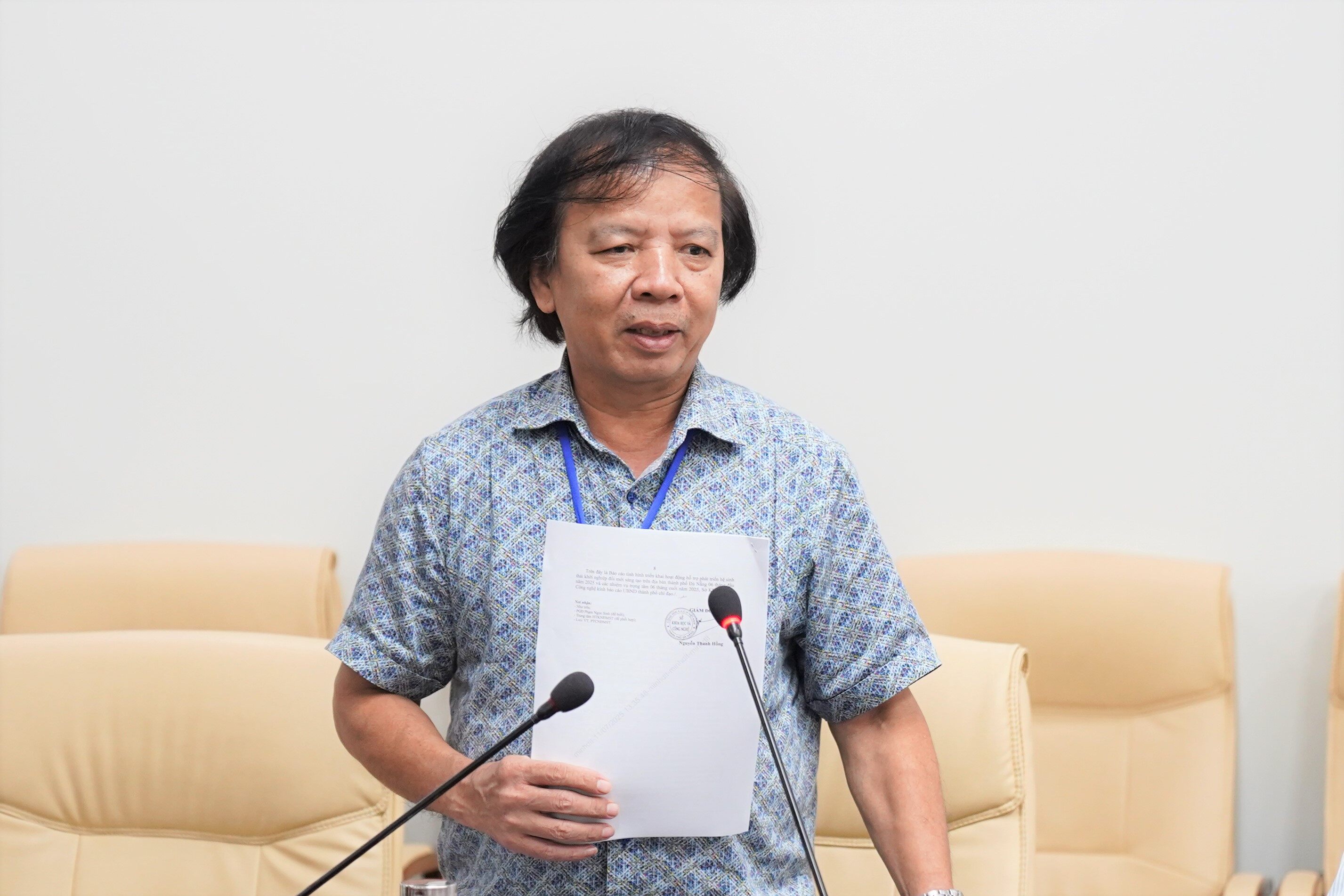 Ông Phạm Ngọc Sinh – Phó Giám đốc Sở Khoa học và Công nghệ thành phố Đà Nẵng báo cáo tổng quan tình hình triển khai hoạt động hỗ trợ phát triển hệ sinh thái khởi nghiệp đổi mới sáng tạo trong 6 tháng đầu năm 2025