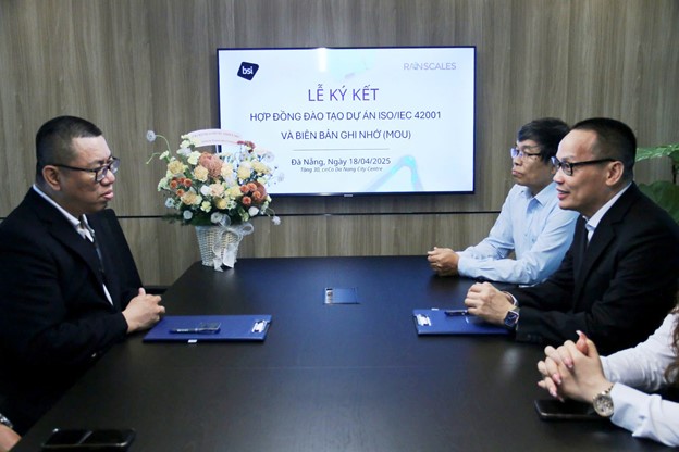 Chiều 18/4, Viện Tiêu Chuẩn Anh – BSI Việt Nam phối hợp với Rainscales VN tổ chức Lễ ký kết Hợp đồng đào tạo Dự án ISO/IEC 42001 và Biên biên bản ghi nhớ hợp tác (MOU). Đến dự có ông Nguyễn Viết Toàn – Giám đốc Trung tâm Hỗ trợ khởi nghiệp đổi mới sáng tạo Đà Nẵng; Ông Lê Hoàng Phúc - Giám đốc Trung tâm nghiên cứu, đào tạo thiết kế vi mạch và trí tuệ nhân tạo Đà Nẵng.
