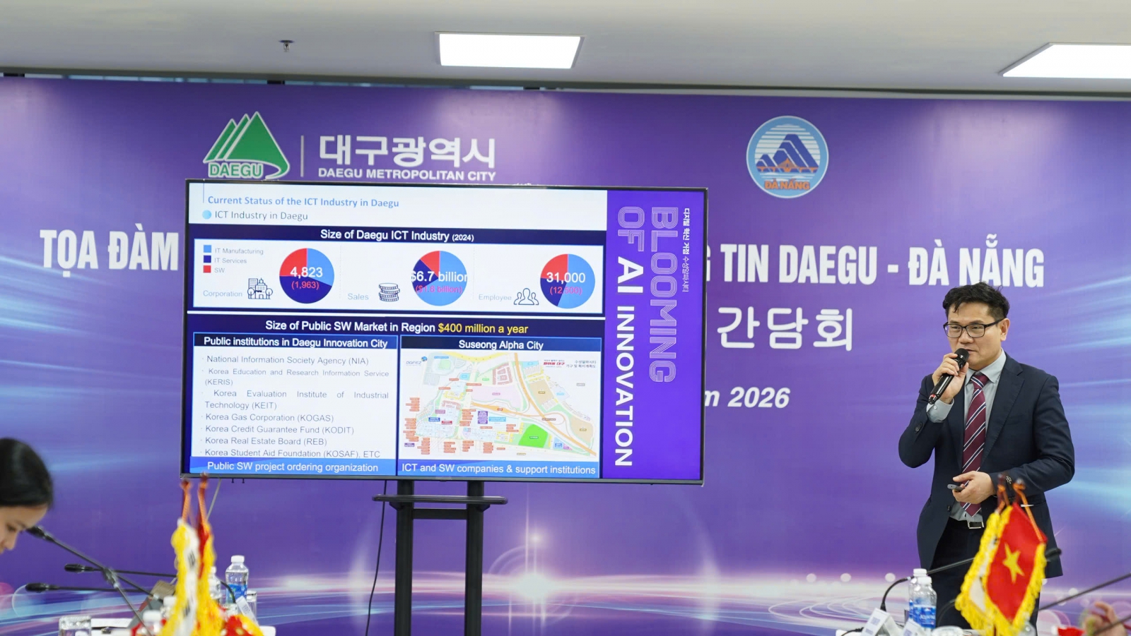 Phó chủ tịch UBND thành phố cho biết Đà Nẵng đang tập trung hoàn thiện hạ tầng chiến lược như Công viên Phần mềm số 2, Khu thương mại tự do Đà Nẵng, Trung tâm tài chính quốc tế, cùng với các cơ chế, chính sách đặc thù theo Nghị quyết số 136 của Quốc hội, tạo hành lang pháp lý và ưu đãi vượt trội để thu hút đầu tư vào các lĩnh vực công nghệ cao, đặc biệt là vi mạch bán dẫn và trí tuệ nhân tạo. Trên cơ sở đó, thành phố mong muốn nâng tầm hợp tác với Daegu trong đào tạo nguồn nhân lực, chuyển giao các giải pháp về đô thị thông minh, IoT, robotics, trí tuệ nhân tạo; đồng thời tạo điều kiện để doanh nghiệp phần mềm Đà Nẵng tham gia chuỗi cung ứng dịch vụ CNTT của các tập đoàn lớn tại Daegu.