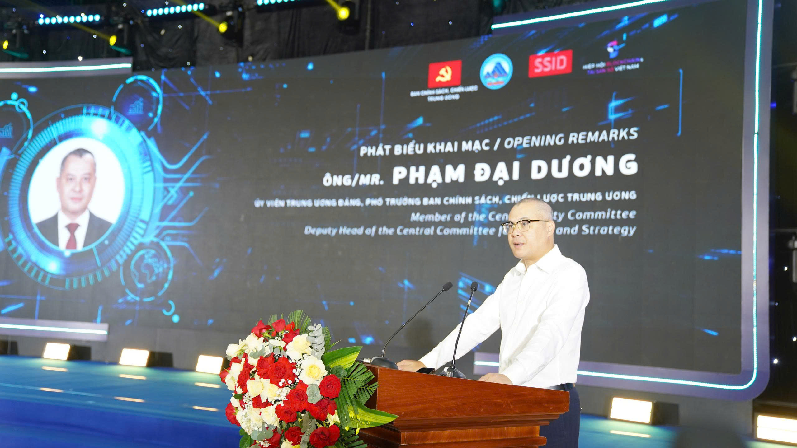 Phát biểu khai mạc, ông Phạm Đại Dương - Ủy viên Trung ương Đảng, Phó Trưởng Ban Chính sách, chiến lược Trung ương nhấn mạnh “Việt Nam đã và đang thể hiện quyết tâm mạnh mẽ trong việc thúc đẩy quá trình chuyển đổi số quốc gia. Chúng ta nhận thức rõ rằng, để hiện thực hóa tầm nhìn này, việc phát triển và ứng dụng công nghệ mới, trong đó có Blockchain, là hết sức quan trọng. Công nghệ Blockchain không chỉ là xu hướng toàn cầu mà còn là chìa khóa để Việt Nam nâng cao năng lực cạnh tranh, hội nhập sâu rộng hơn vào nền kinh tế số quốc tế.”