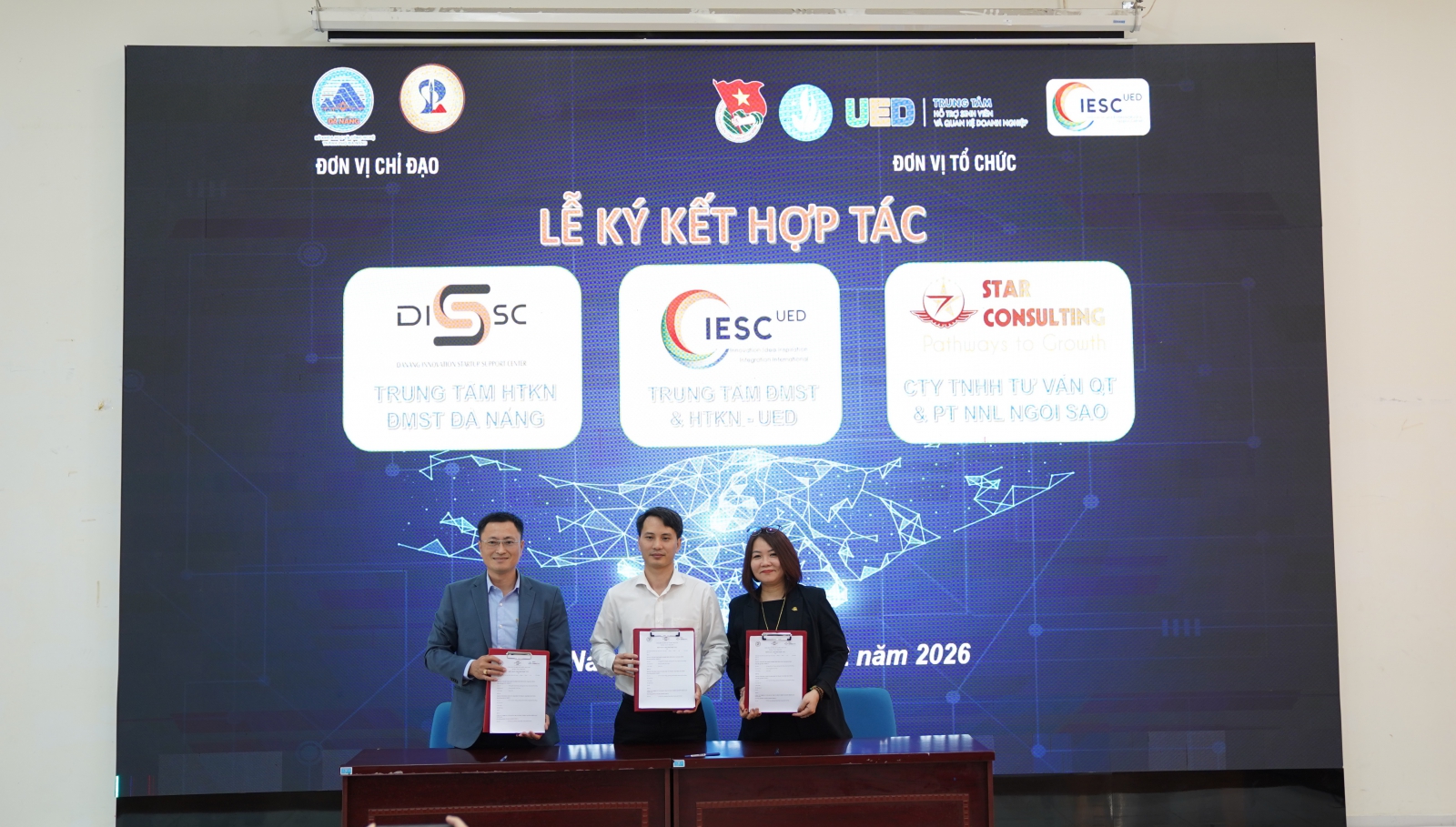 Lễ ký kết hợp tác giữa Trung tâm Hỗ trợ khởi nghiệp đổi mới sáng tạo Đà Nẵng, Trung tâm Đổi mới sáng tạo và Hỗ trợ khởi nghiệp UED và Công ty TNHH Tư vấn quản trị và phát triển nguồn nhân lực Ngôi Sao