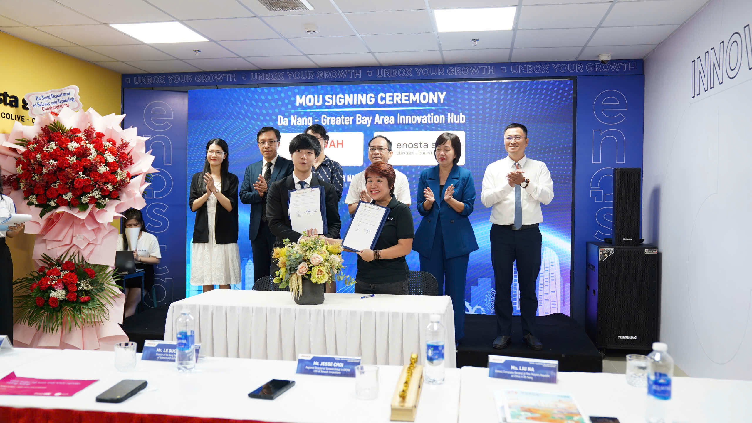 Để đánh dấu sự kiện ra mắt Không gian Đổi mới sáng tạo Đà Nẵng – Vùng Vịnh lớn, trong khuôn khổ chương trình cũng đã diễn ra nghi thức cắt băng khánh thành Không gian và lễ ký kết Biên bản ghi nhớ hợp tác quan trọng giữa Sunwah Innovations và Enosta Space trong việc kết nối hệ sinh thái khởi nghiệp Đà Nẵng với Vùng Vịnh lớn.