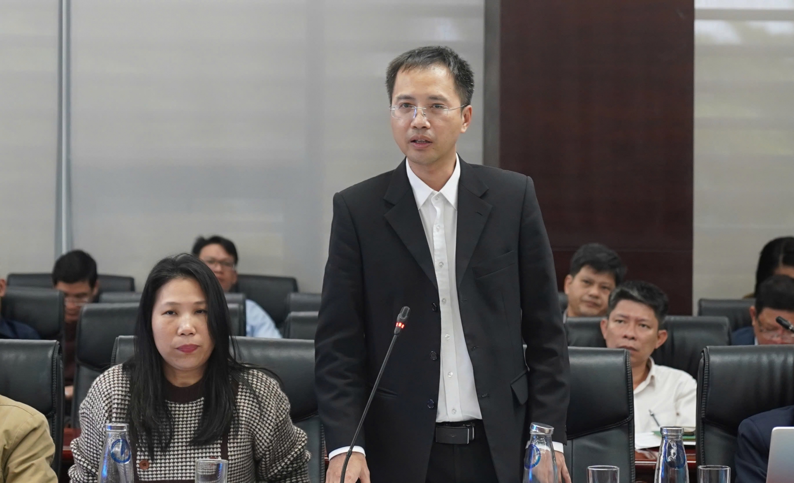 Ông Phạm Hải Anh – Giám đốc Trung tâm tuyển sinh và dịch vụ việc làm, Trường Cao Đẳng Quảng Nam tham luận tại buổi làm việc