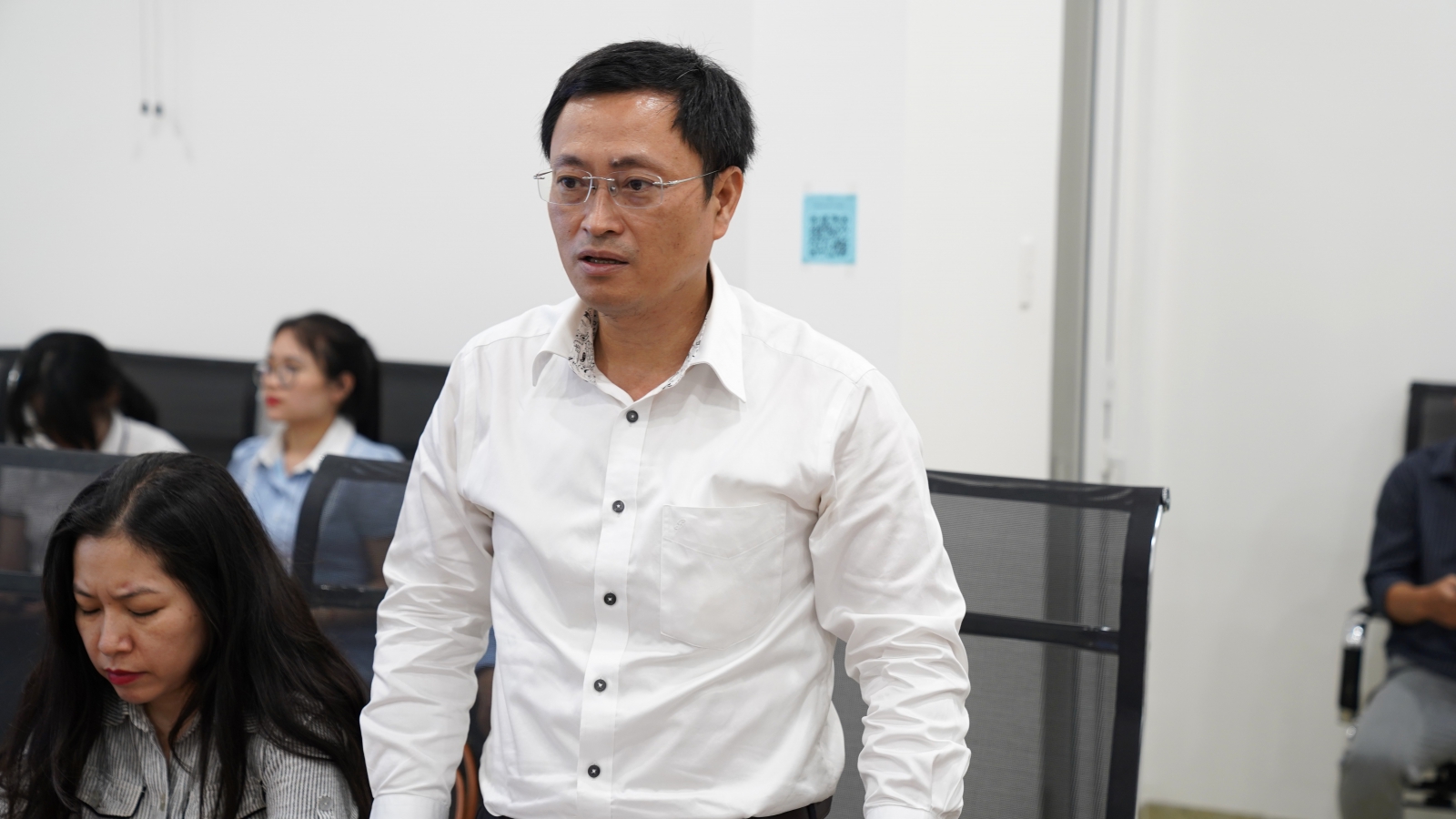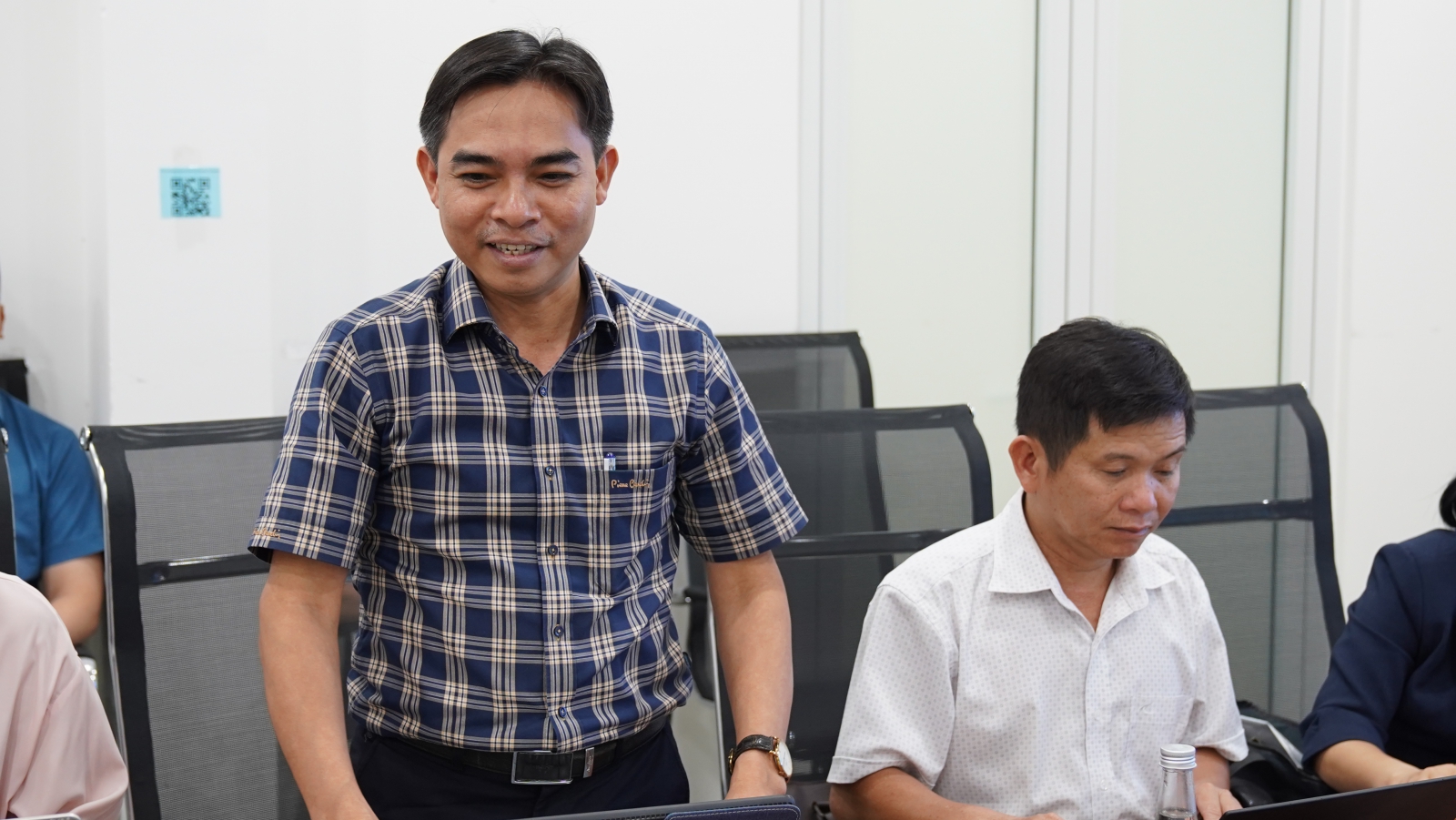 Ông Trần Duy Linh – Giám đốc Trung tâm Chuyển đổi số và Đổi mới sáng tạo tỉnh Quảng Ngãi trao đổi tại buổi làm việc