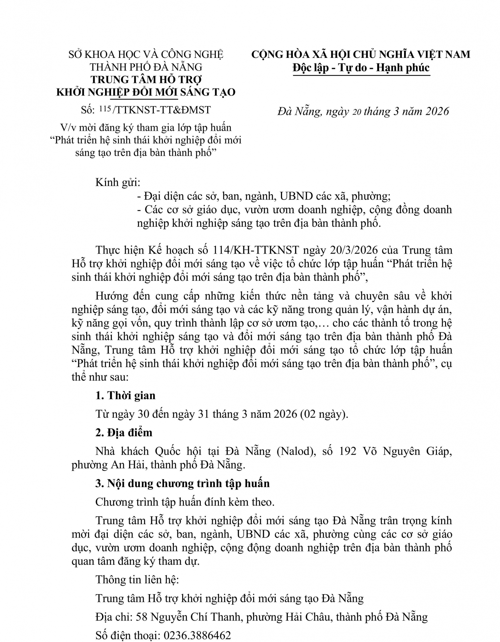 Sáng 20/3, Trung tâm Hỗ trợ khởi nghiệp đổi mới sáng tạo Đà Nẵng (Sở Khoa học và Công nghệ thành phố Đà Nẵng) tổ chức Hội thảo “Hướng dẫn thông tin triển khai Chỉ số đổi mới sáng tạo cấp địa phương của thành phố Đà Nẵng (PII)”.