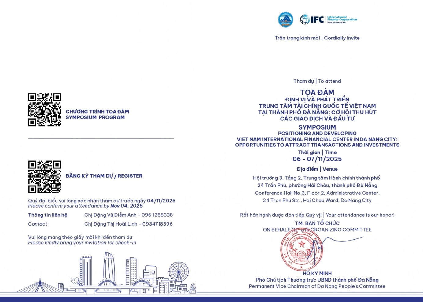 THƯ MỜI TỌA ĐÀM ĐỊNH VỊ VÀ PHÁT TRIỂN TRUNG TÂM TÀI CHÍNH QUỐC TẾ VIỆT NAM TẠI THÀNH PHỐ ĐÀ NẴNG: CƠ HỘI THU HÚT CÁC GIAO DỊCH VÀ ĐẦU TƯ