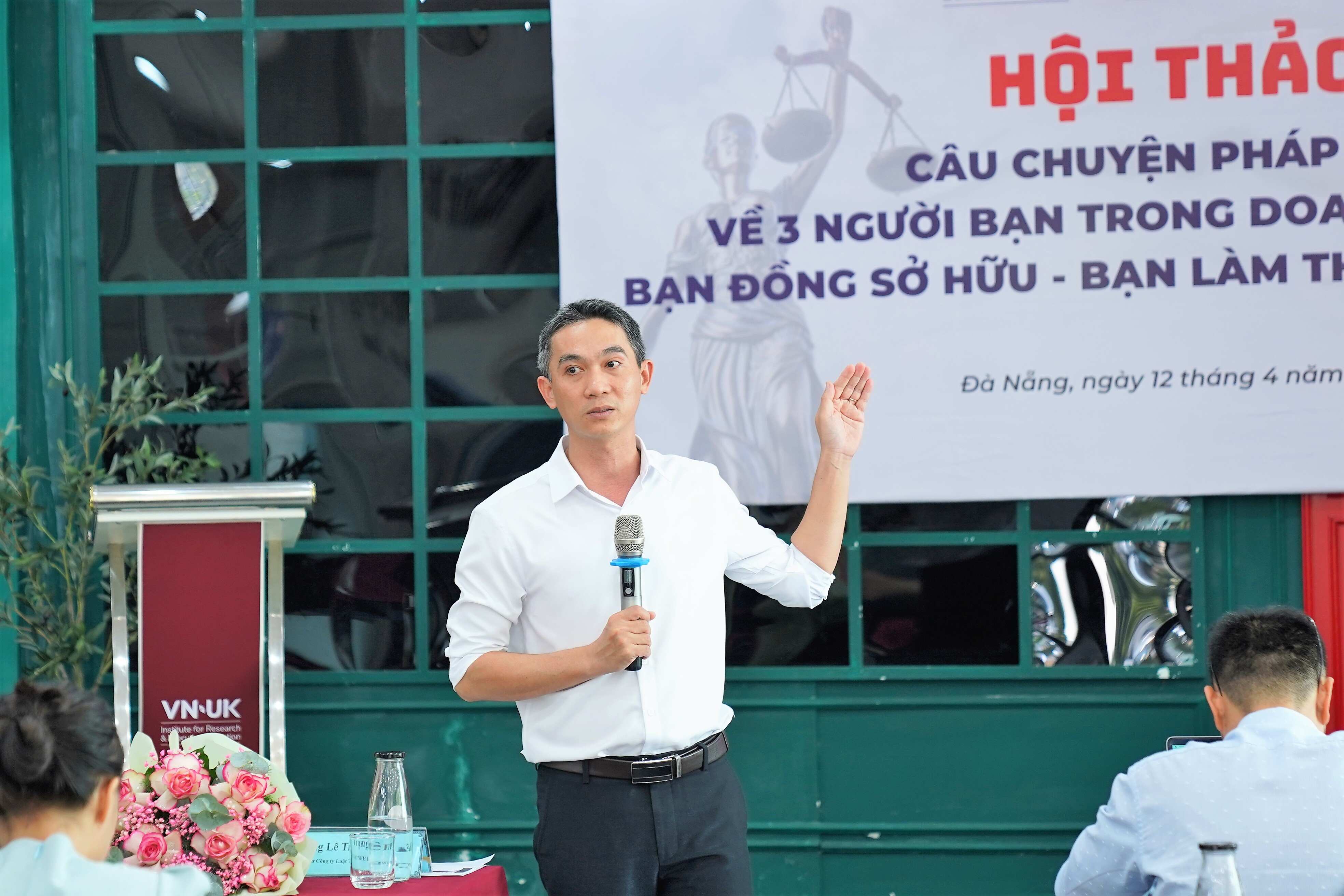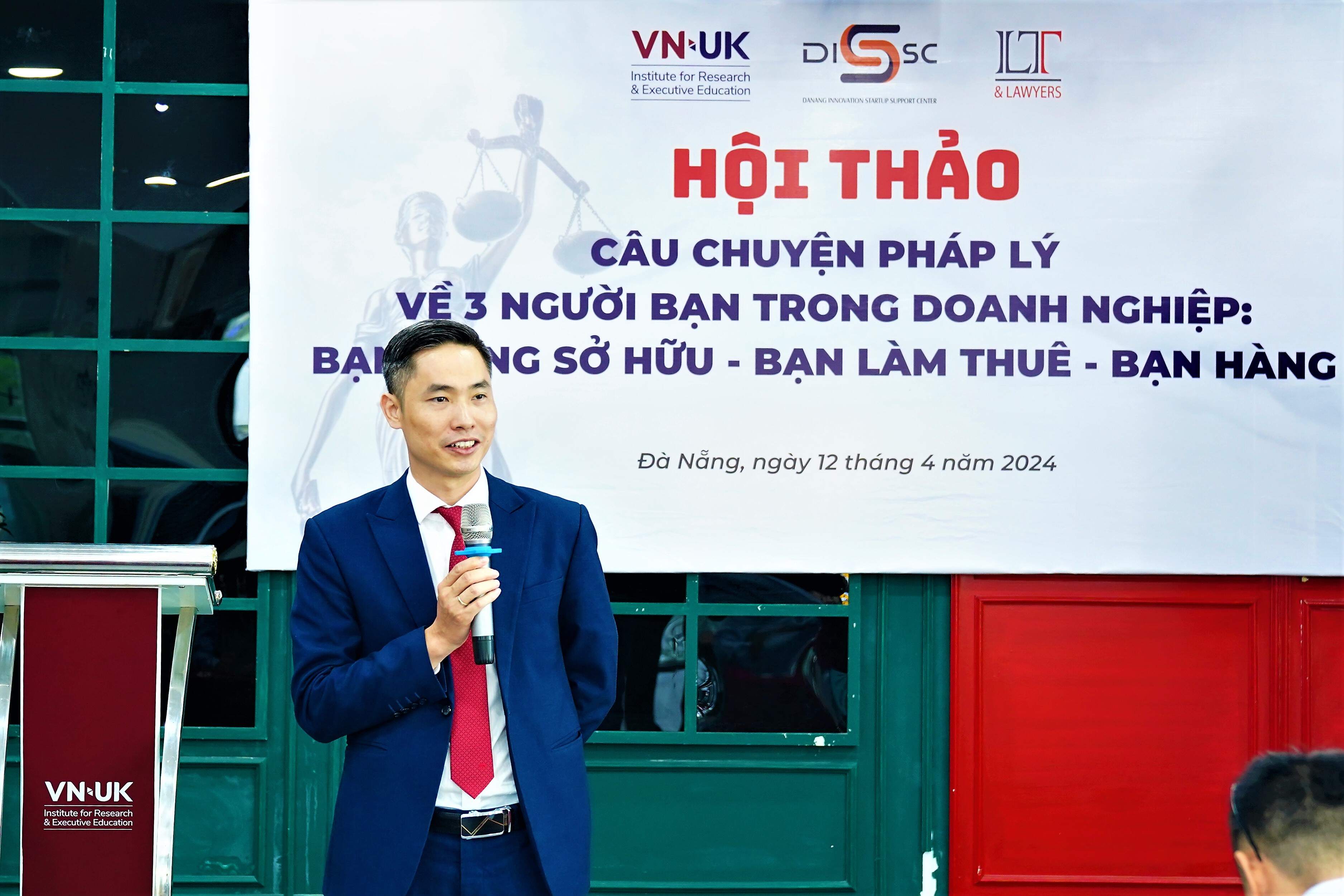 Sáng ngày 12/4, tại Viện Nghiên cứu và Đào tạo Việt Anh (VNUK), Trung tâm Hỗ trợ khởi nghiệp đổi mới sáng tạo thuộc Sở Khoa học và Công nghệ thành phố Đà Nẵng phối hợp cùng VNUK và Công ty Luật TNHH LTT & Lawyers tổ chức Hội thảo: “Câu chuyện pháp lý về 3 người bạn trong doanh nghiệp: Bạn đồng sở hữu, Bạn làm thuê và Bạn hàng”. Hội thảo nhằm tạo điều kiện cho các doanh nghiệp tại Đà Nẵng nâng cao kiến thức về pháp lý quản trị, đồng thời hướng các doanh nghiệp hoạt động và tuân thủ theo pháp luật thúc đẩy môi trường kinh doanh tử tế và lành mạnh.