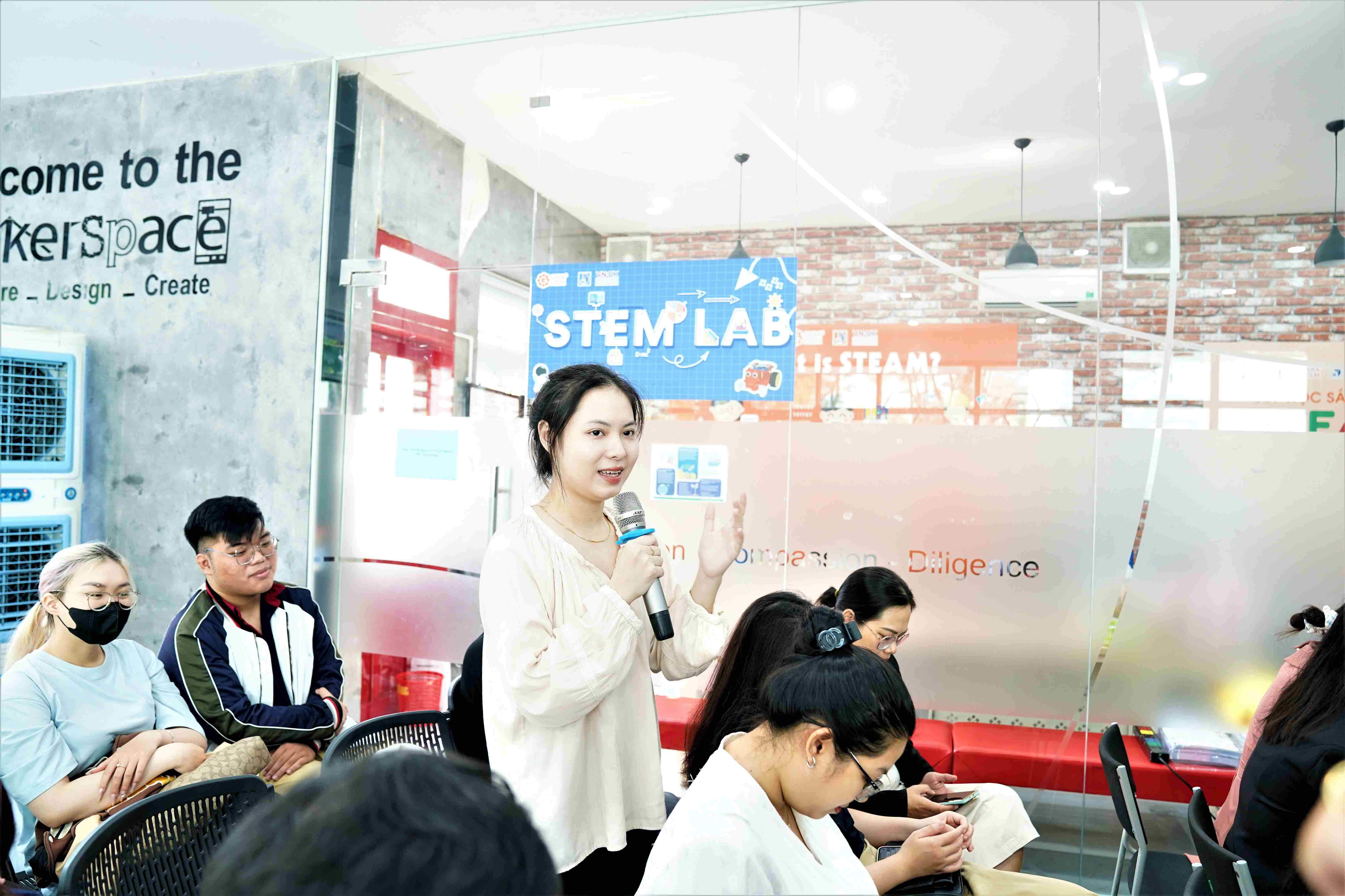 Phát biểu khai mạc, NCS.ThS Vũ Xuân Cẩm Tú - Phụ trách Khoa Quản trị và Kinh doanh quốc tế Viện Nghiên cứu và Đào tạo Việt Anh, Đại học Đà Nẵng nhấn mạnh vai trò quan trọng của các vấn đề pháp lý đối với sự thành công trên con đường khởi nghiệp của các bạn sinh viên và doanh nghiệp khởi nghiệp.