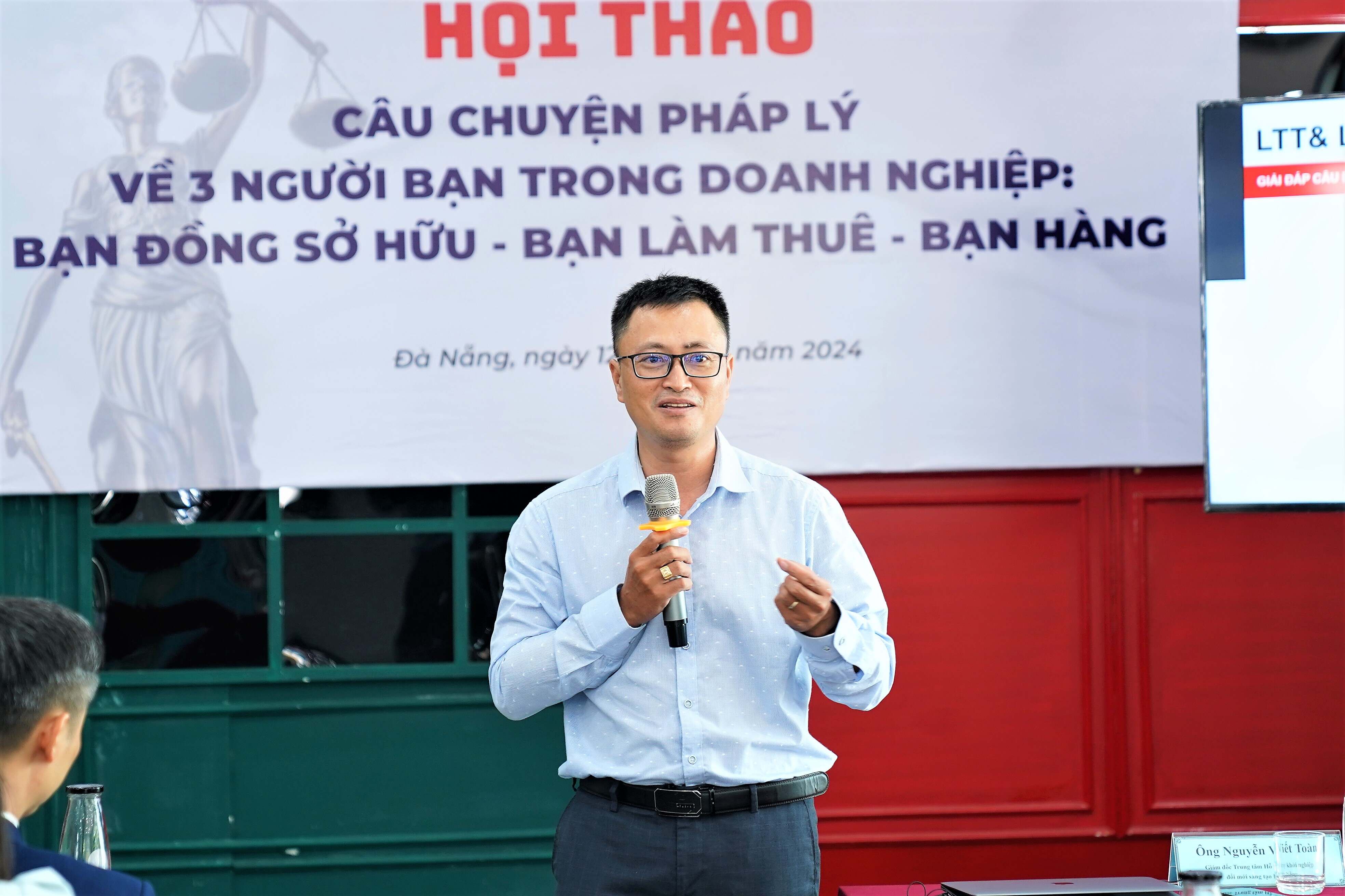 Phát biểu tại chương trình, ông Nguyễn Viết Toàn – Giám đốc Trung tâm Hỗ trợ khởi nghiệp đổi mới sáng tạo Đà Nẵng mong muốn quý doanh nghiệp, các bạn sinh viên tham gia chương trình hiểu rõ hơn về những vấn đề pháp lý thường gặp khi lựa chọn đồng sở hữu, nhân viên và khách hàng trong quá trình hoạt động. Đồng thời, nâng cao kiến thức trong việc xây dựng các chiến lược hiệu quả để phát triển doanh nghiệp, đảm bảo việc vận hành dự án.