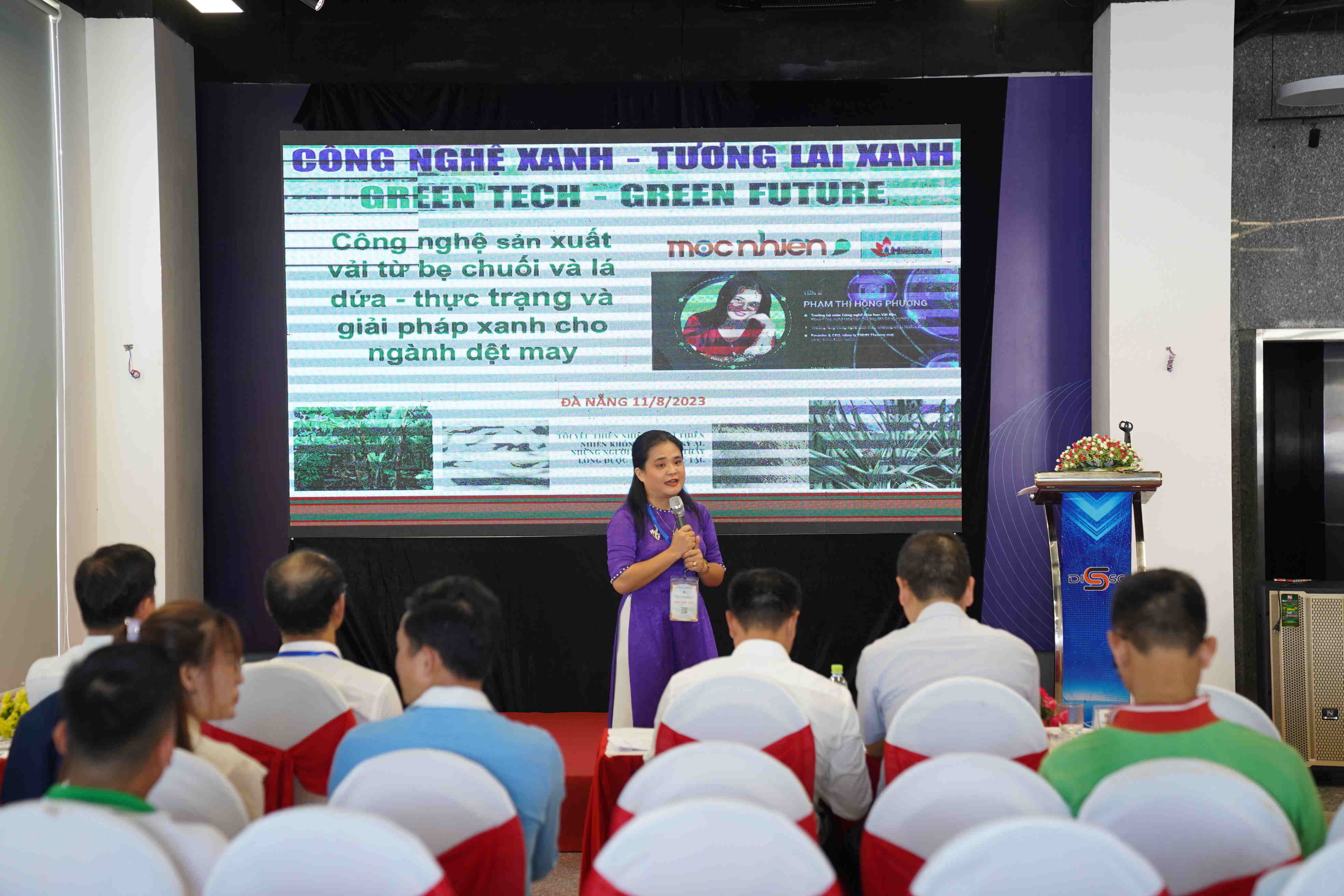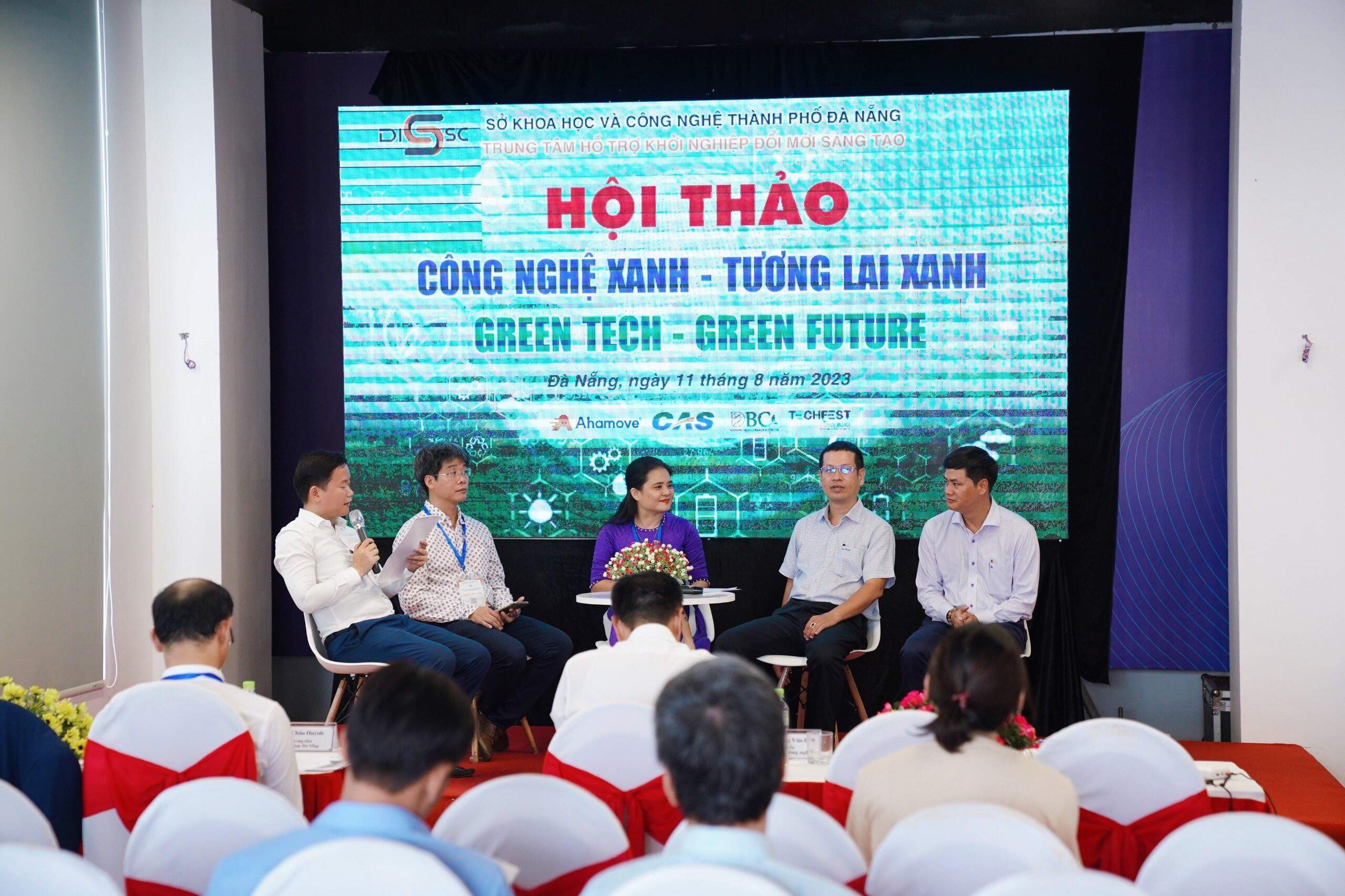 Tại Hội thảo có 06 bài tham luận được trình bày bởi: (1) ThS. Nguyễn Viết Toàn - Giám Đốc Trung tâm Hỗ trợ khởi nghiệp đổi mới sáng tạo - Sở Khoa học và Công nghệ Đà Nẵng, báo cáo đề dẫn: “Chương trình phát triển thị trường khoa học và công nghệ của thành phố Đà Nẵng đến năm 2030 và một số tiềm lực phát triển thị trường KH&CN của thành phố Đà Nẵng”; (2) Ông Nguyễn Tuấn Minh – Trưởng dự án Ahafast tại Đà Nẵng, báo cáo tham luận: “AhaFast - Hành trình xây dựng nền tảng công nghệ số kết hợp kinh tế xanh”; (3) Ông Trần Anh Đông, Giám đốc Công ty TNHH giải pháp điều khiển và tự động hoá CAS, báo cáo tham luận: “Kinh tế xanh: Cơ hội & Thách thức - Góc nhìn từ một doanh nghiệp công nghệ cao Đà Nẵng”; (4) TS. Phạm Châu Huỳnh - Giám đốc Trung tâm công nghệ sinh học Đà Nẵng, báo cáo tham luận: “Trung tâm Công nghệ sinh học Đà Nẵng với hoạt động kết nối hợp tác phát triển thị trường KH&CN”; (5) TS. Phạm Thị Hồng Phượng, Chủ nhiệm Bộ môn Công nghệ Hóa học Vật liệu, trường Đại học Công nghiệp Tp. HCM - Trưởng làng Công nghệ sinh thái (Ecotech), Techfest Việt Nam, báo cáo tham luận: “Công nghệ sản xuất vải từ bẹ chuối và lá dứa - thực trạng và giải pháp xanh cho ngành dệt may”; (6) ThS. Lê Vũ Tiến, Phó giám đốc trung tâm dịch vụ và đổi mới công nghệ (Costi), Đồng trưởng làng Ecotech, Techfest Việt Nam, báo cáo tham luận: “Tín chỉ carbon - sự hiểu biết của doanh nghiệp và hành lang pháp lý”.