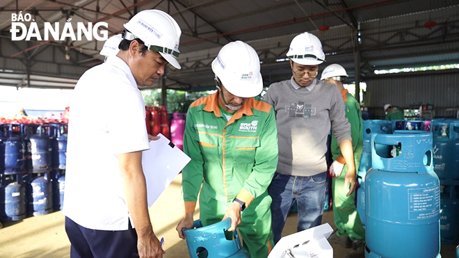 Cán bộ Sở Khoa học và Công nghệ kiểm tra về đo lường, chất lượng tại Chi nhánh miền Trung - Công ty CP Kinh doanh khí miền Nam (Gas South). Ảnh: THANH THẢO