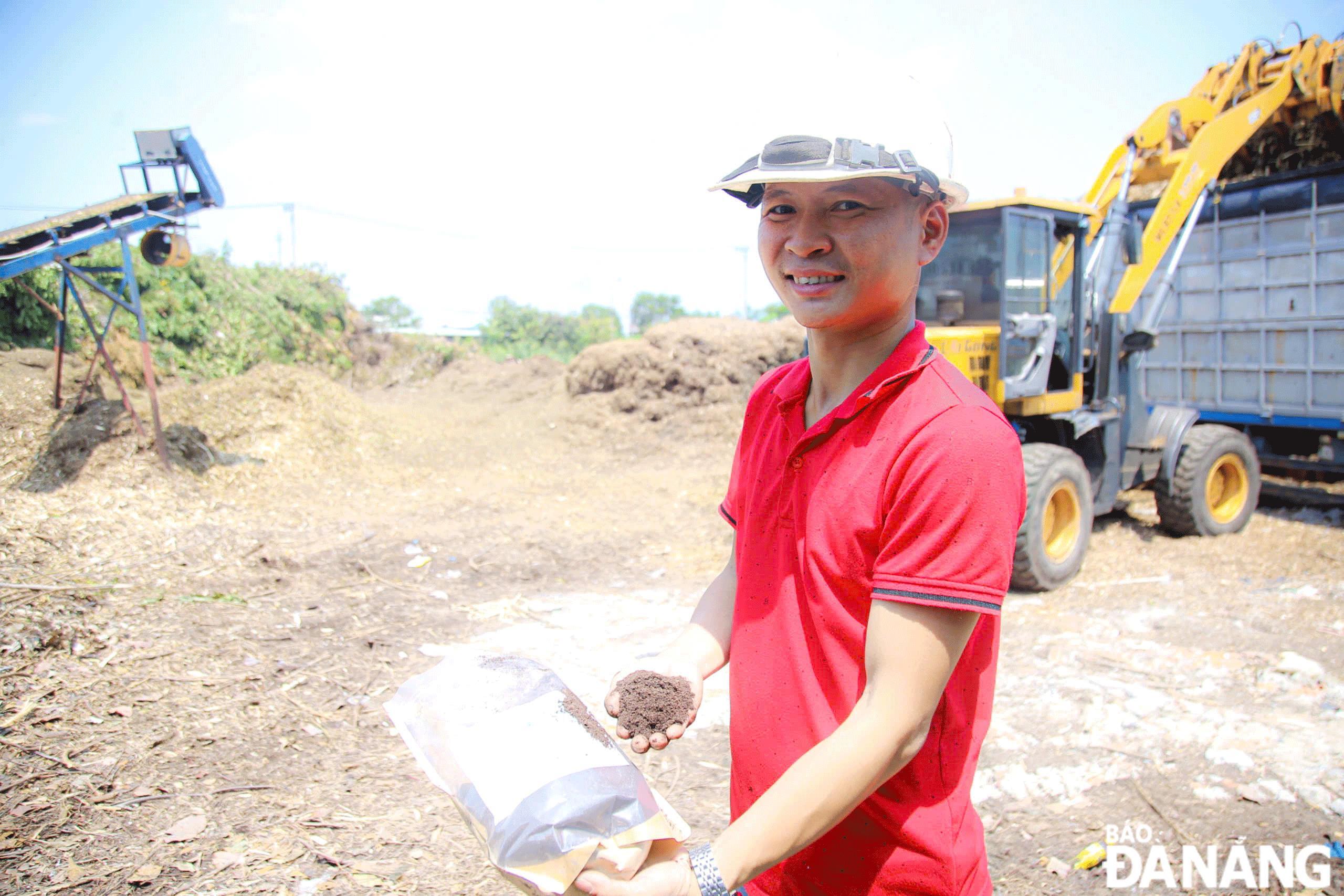 Dần về sau, việc kinh doanh ổn định hơn, anh Long quyết định thành lập doanh nghiệp là Công ty CP Năng lượng sạch Hải Vân vào tháng 11-2023, cũng từ đó công ty nhận được nhiều đơn hàng chất lượng. Khoảng 1 năm trở lại đây, công ty anh cung cấp khoảng 100-500 tấn/tháng gỗ băm dăm cho các doanh nghiệp năng lượng để phục vụ các lò hơi. Bên cạnh đó, khoảng 5 tấn/tháng giá thể đất trồng cho các hợp tác xã, trang trại, hộ dân trên địa bàn thành phố.