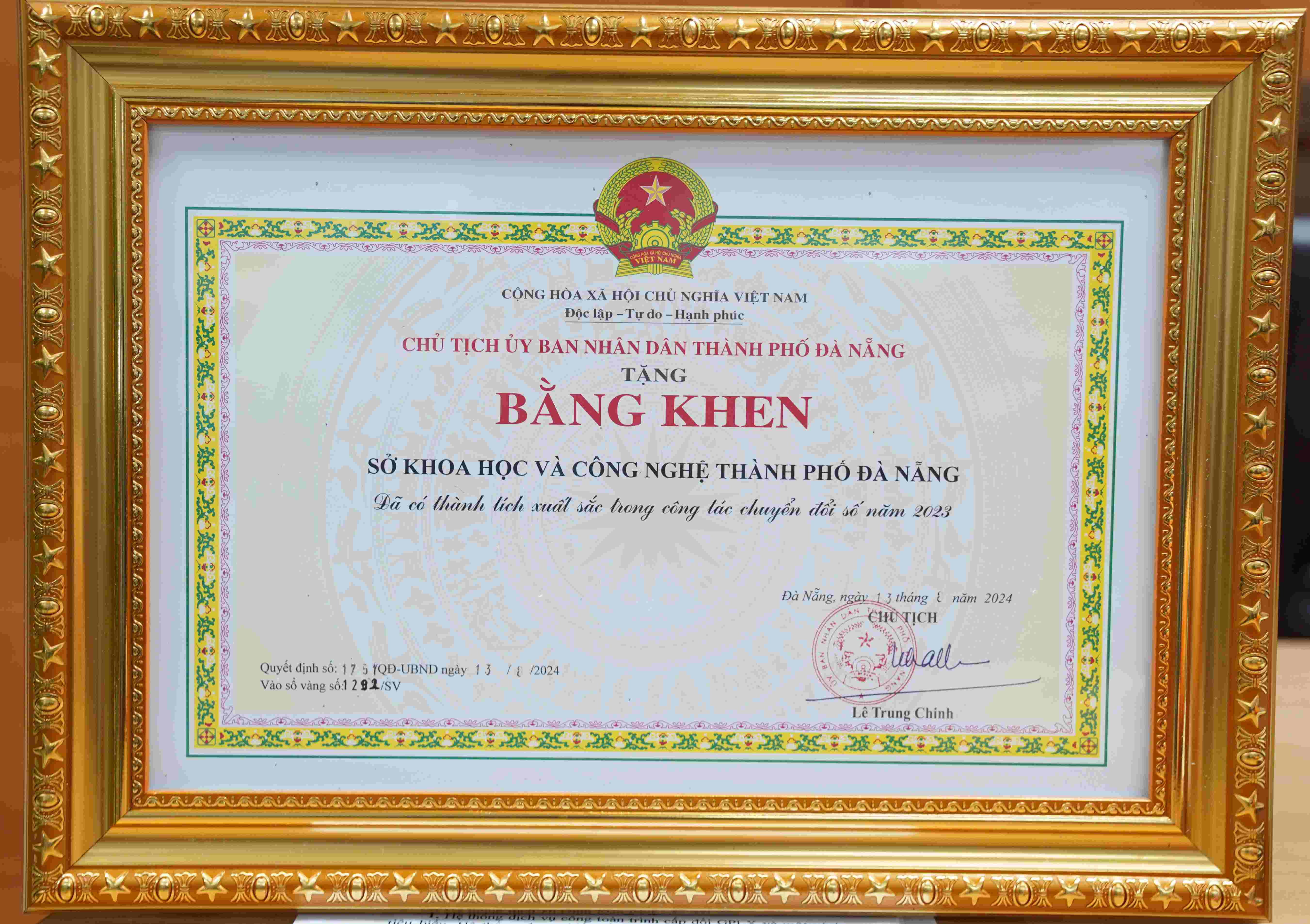 Sở Khoa học và Công nghệ thành phố Đà Nẵng nhận Bằng khen của Chủ tịch UBND thành phố vì có thành tích xuất sắc trong công tác chuyển đổi số năm 2023
