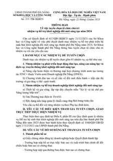 Thông báo Về việc tuyển chọn tổ chức chủ trì nhiệm vụ hỗ trợ khởi nghiệp đổi mới sáng tạo năm 2024