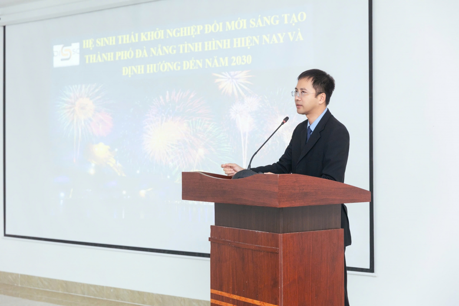 Ông Võ Đức Anh – Phó Giám đốc Trung tâm Hỗ trợ khởi nghiệp đổi mới sáng tạo Đà Nẵng chia sẻ tại buổi tập huấn