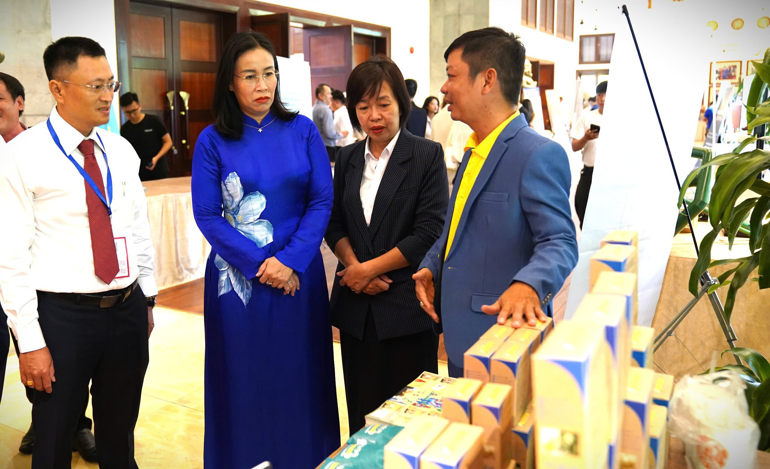 Lãnh đạo thành phố, Lãnh đạo Sở KH&CN tham quan sản phẩm trưng bày của các dự án khởi nghiệp