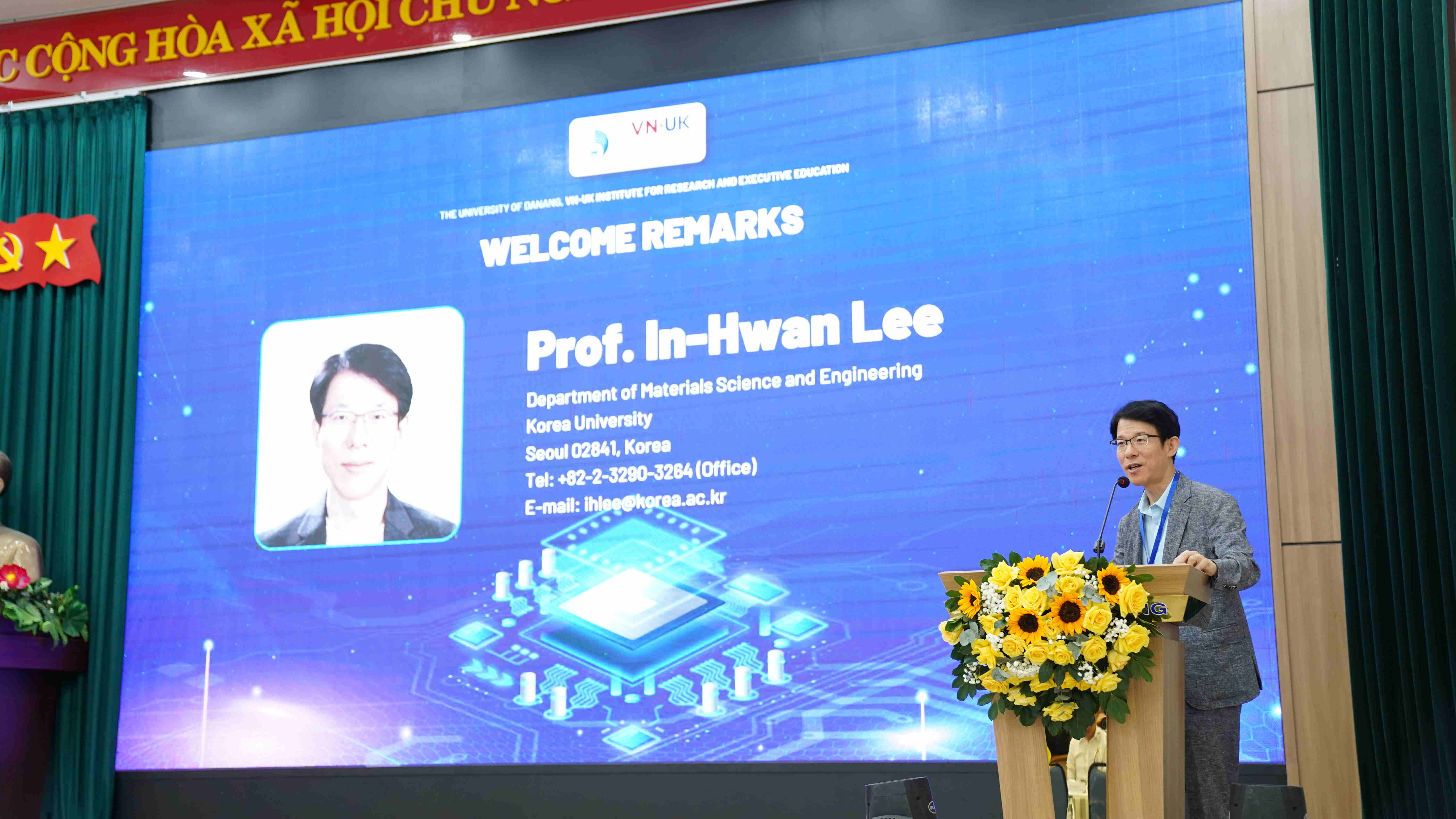 Phát biểu tại lễ khai mạc, PGS.TS. Giang Thị Kim Liên, Phó Viện trưởng VNUK, Trưởng Ban Tổ chức nhấn mạnh: “Hội thảo là cơ hội quý báu để các nhà khoa học, giảng viên và sinh viên giao lưu học thuật, cập nhật kiến thức tiên tiến, đồng thời thúc đẩy hợp tác nghiên cứu quốc tế trong lĩnh vực công nghệ vật liệu bán dẫn”.