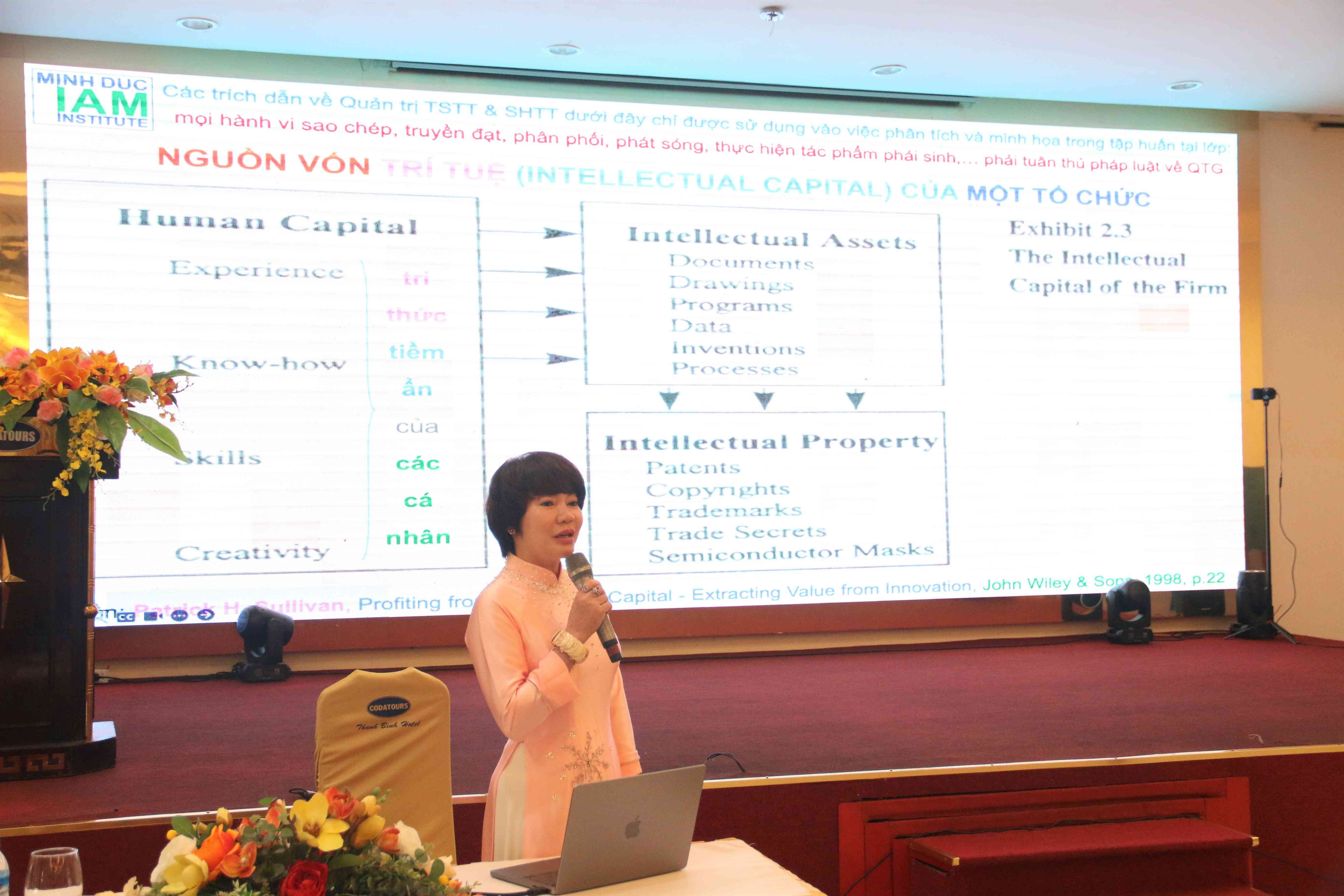 Chia sẻ tại buổi tập huấn, TS. Lê Thị Thanh Tâm – Giảng viên luật về sở hữu trí tuệ, Phó Tổng Thư ký Hội Sáng chế Việt Nam, Trọng tài viên Trung tâm Trọng tài Thương mại Quốc tế châu Á - Thái Bình Dương (PIAC) đã làm rõ các bước trong quy trình quản trị tài sản trí tuệ hiệu quả: từ xây dựng danh mục tài sản trí tuệ nội bộ, theo dõi tiến trình đăng ký, đến bảo vệ quyền lợi trước các hành vi xâm phạm. Bà Lê Thị Thanh Tâm cũng khuyến nghị doanh nghiệp cần chủ động trang bị kiến thức, tận dụng công nghệ tra cứu tài sản trí tuệ, và hợp tác với các đơn vị tư vấn chuyên nghiệp để tránh các thiệt hại không đáng có.