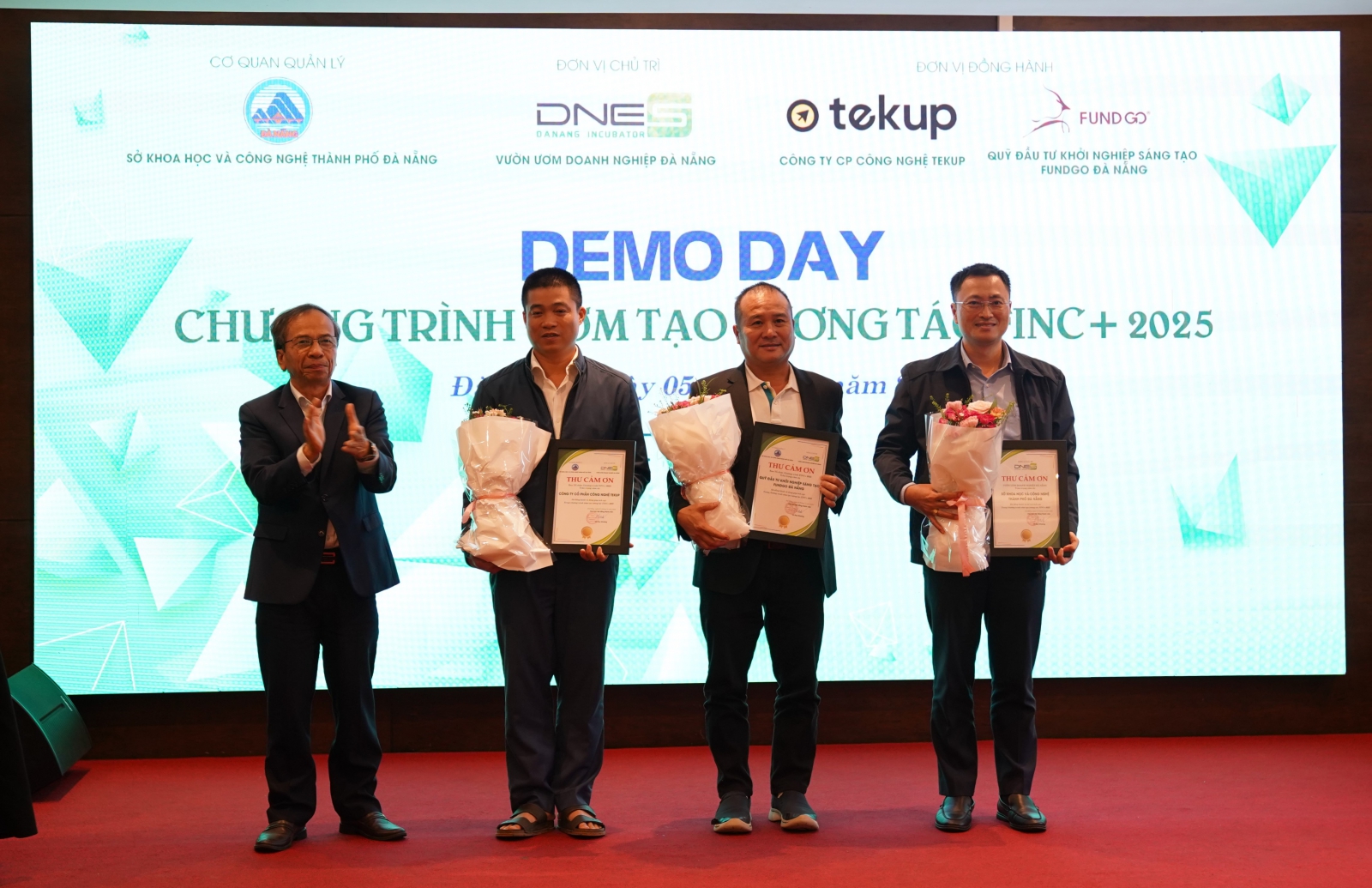 Đại diện DNES, ông Phạm Đức Linh - Phó Chủ tịch thường trực HĐTV gửi lời cảm ơn sâu sắc đến các đối tác đã đồng hành và công bố định hướng chiến lược mới của DNES: chuyển từ mô hình ươm tạo tổng quát sang xây dựng các chương trình chuyên sâu theo từng phân khúc, trước hết là nhóm dự án AI có khả năng vươn ra thị trường toàn cầu. DNES cam kết hỗ trợ 90-95% nguồn lực, bao gồm vốn từ quỹ nội bộ và các quỹ đối tác trong nước và Singapore, đồng thời cung cấp 200-500 khách hàng đầu tiên để các startup thử nghiệm thị trường. Mục tiêu của DNES là tận dụng sức mạnh nhân lực Đà Nẵng để đưa dự án công nghệ chinh phục thị trường quốc tế và thu hút các startup toàn cầu về thành phố.