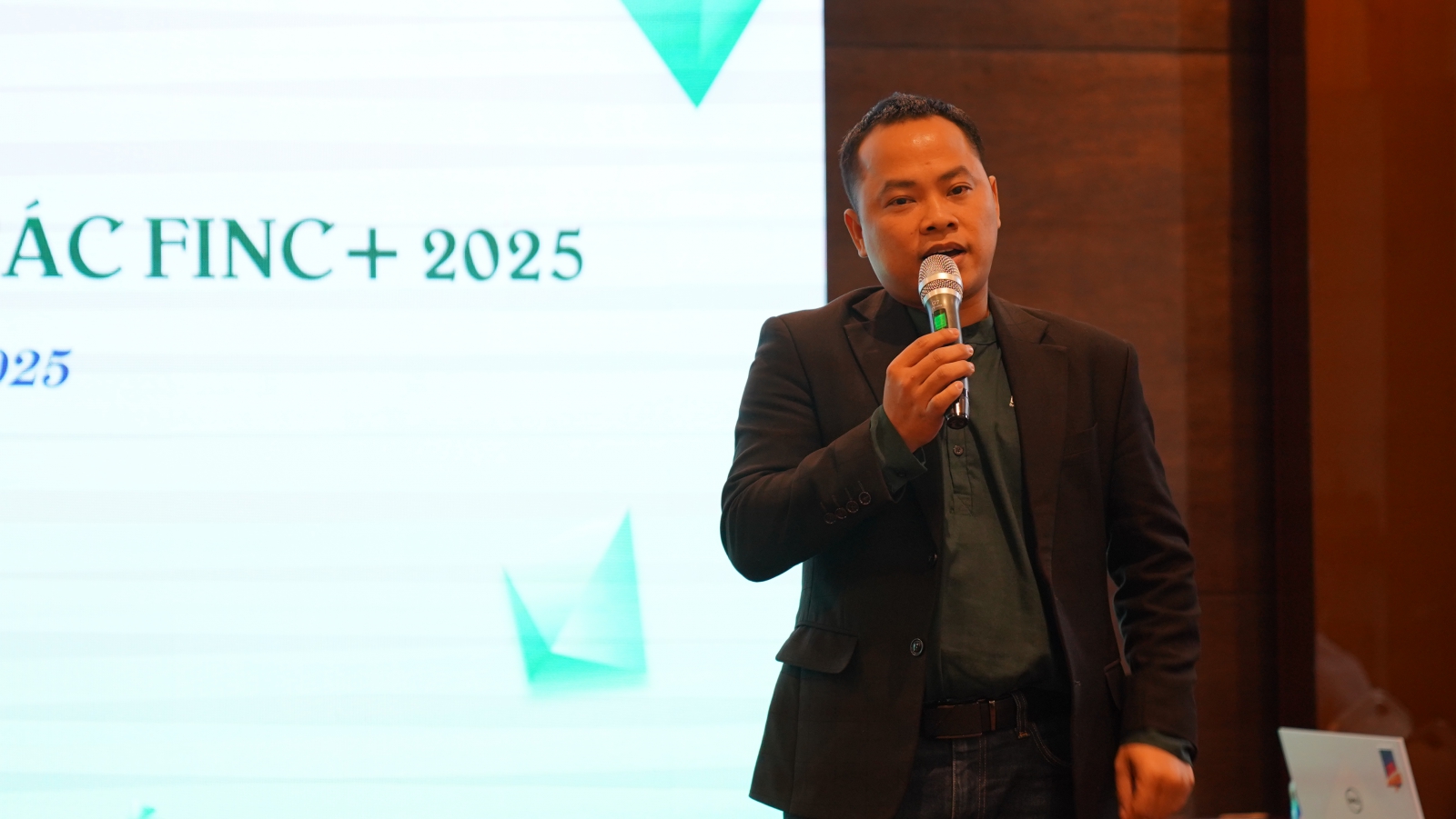Anh Huy Nguyễn - Founder dự án ENFUE đại diện cho 05 dự án ươm tạo đã hoàn thành Chương trình ươm tạo tương tác FINC+ 2025 chia sẻ tại sự kiện