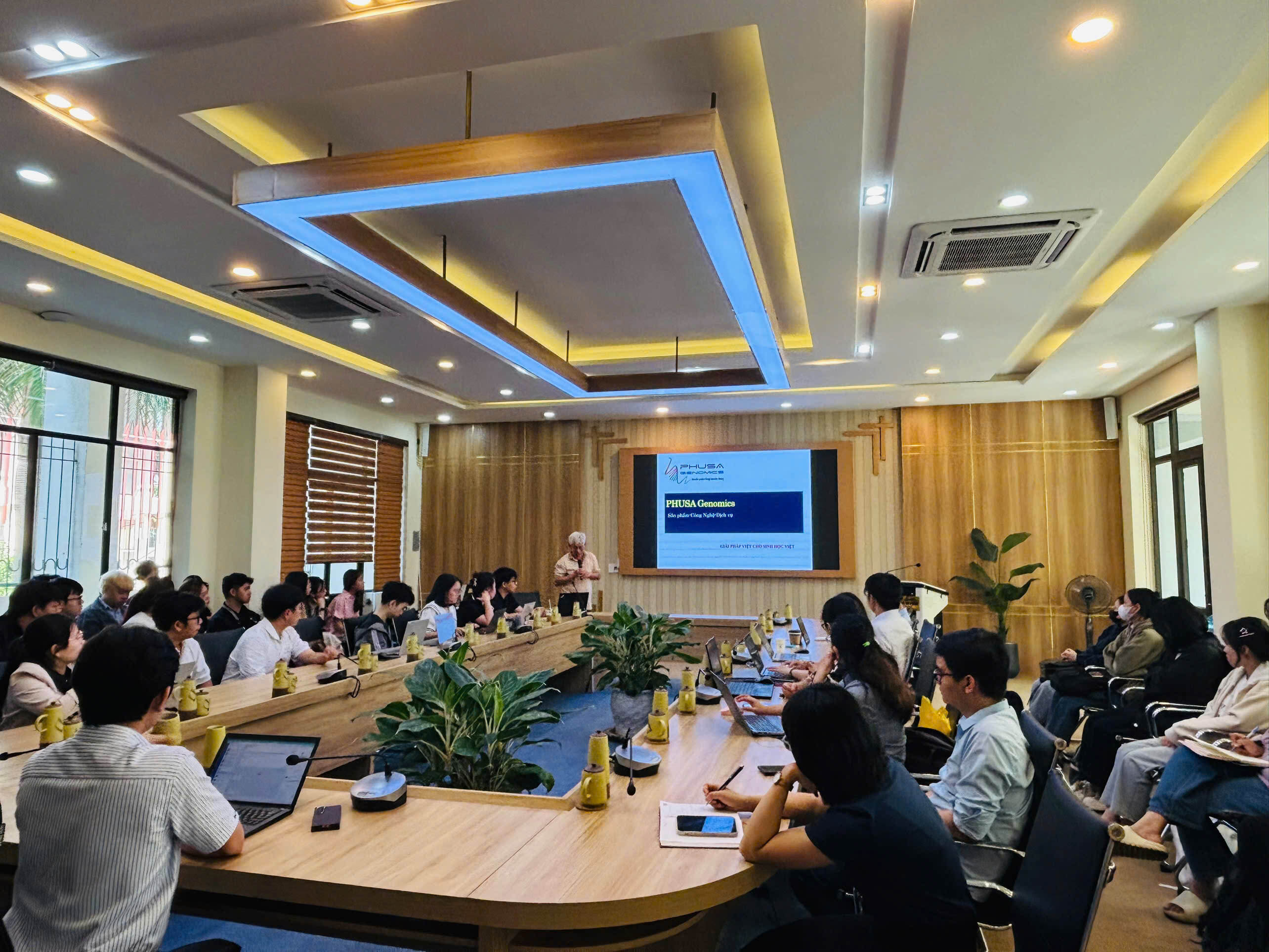Ngoài ra, các đại biểu, khách mời tham dự hội thảo đã có phần trao đổi, thảo luận và theo dõi trình diễn thiết bị PCR trực tiếp tại chỗ do đội ngũ kỹ thuật của Công ty Phù Sa Genomics thực hiện. Hoạt động này đã mang đến góc nhìn thực tế và sinh động về các ứng dụng công nghệ mới, giúp người tham dự – đặc biệt là giảng viên và sinh viên – có thêm kiến thức và trải nghiệm thực tiễn giá trị.