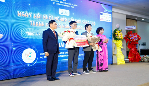 Ông Trần Văn Tùng, Thứ trưởng Thường trực Bộ Khoa học và Công nghệ và Bà Ngô Thị Kim Yến - Phó Chủ tịch UBND thành phố Đà Nẵng, Chủ tịch Hội đồng Điều phối mạng lưới khởi nghiệp đổi mới sáng tạo thành phố trao giải Nhất cho CÔNG TY TNHH CÔNG NGHỆ SINH HỌC VINSEED - Dự án “Mô hình tủ nuôi Đông trùng hạ thảo”
