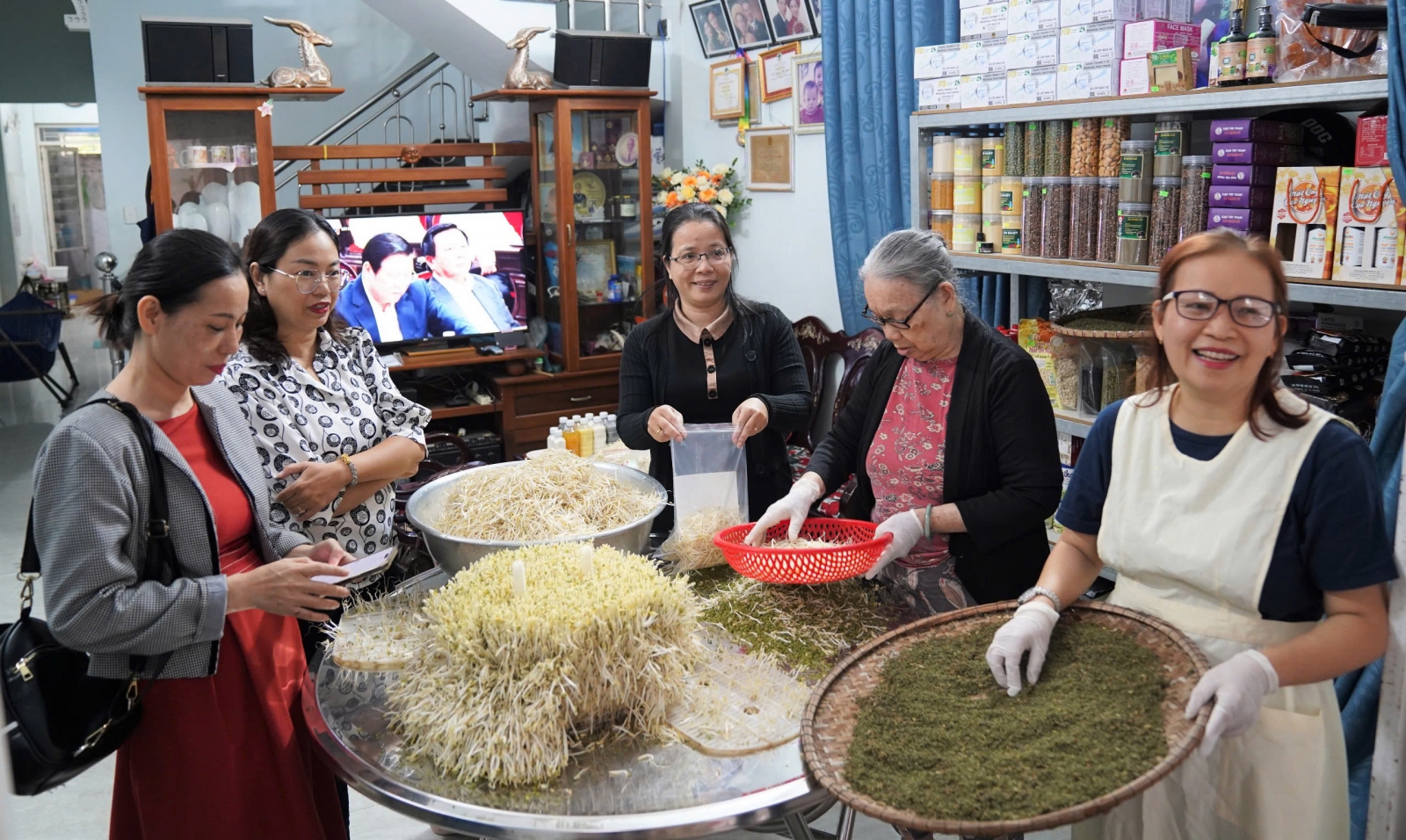 Hội Nông dân phường Thanh Bình (Hải Châu) khảo sát mô hình tại hộ dân ứng dụng công nghệ sản xuất giá đỗ sạch GV-102